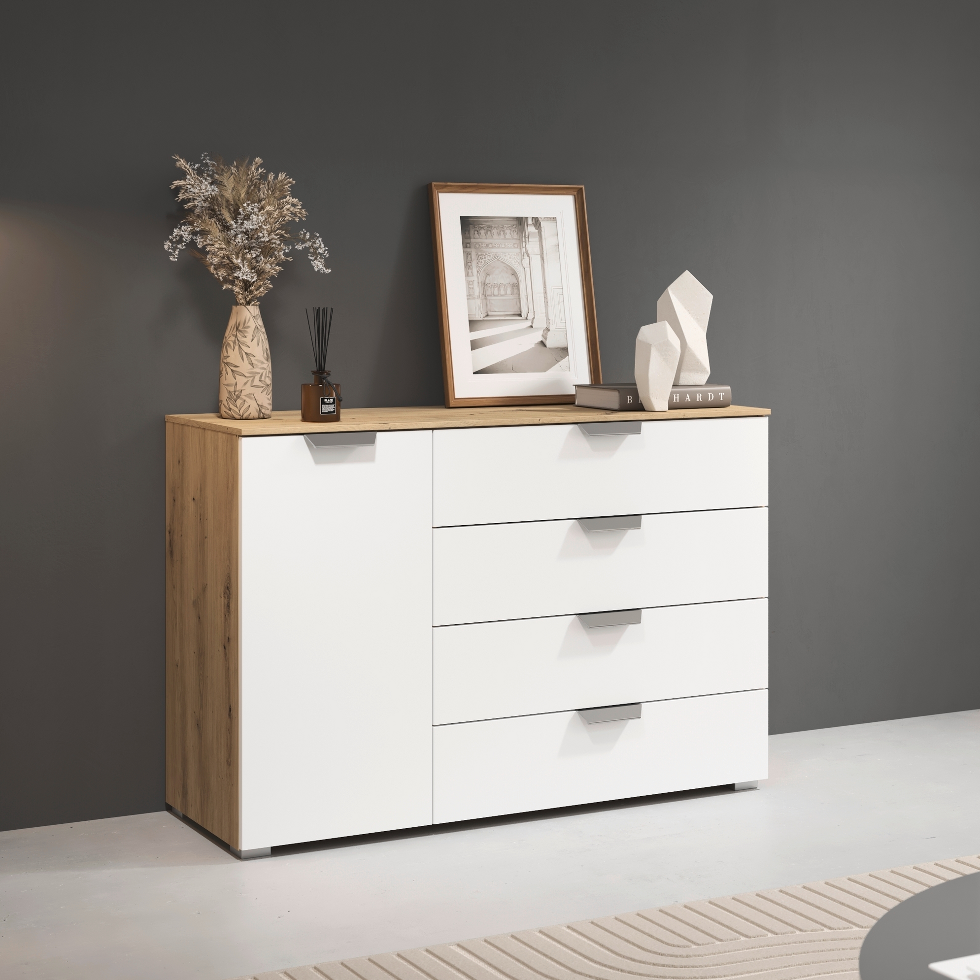 Kommoden werden aus verschiedenen Materialien gefertigt. Die Kommoden von rauch werden vor allem aus Spanplatten, je nach Modell auch aus Teilmassivholz oder Massivholz hergestellt. Massivholz ist langlebig und robust, benötigt aber mehr Pflege. Spanplatten sind leichter und kostengünstiger, aber weniger beständig gegenüber Feuchtigkeit und Schäden. Die beste Wahl hängt von deinen persönlichen Präferenzen, dem Budget und dem gewünschten Stil ab.