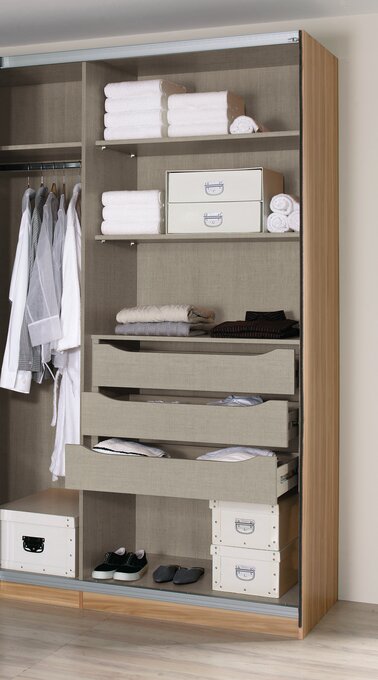 Unser umfangreiches Zubehörsortiment ist exakt auf die jeweiligen Programme der rauch Marken abgestimmt. So findest du jederzeit die passende Erweiterung – egal ob für deinen Schrank, dein Bett oder deine Kommode. Die Zubehörteile lassen sich einfach montieren, überzeugen durch ihre Passgenauigkeit und sorgen für ein harmonisches Gesamtbild.