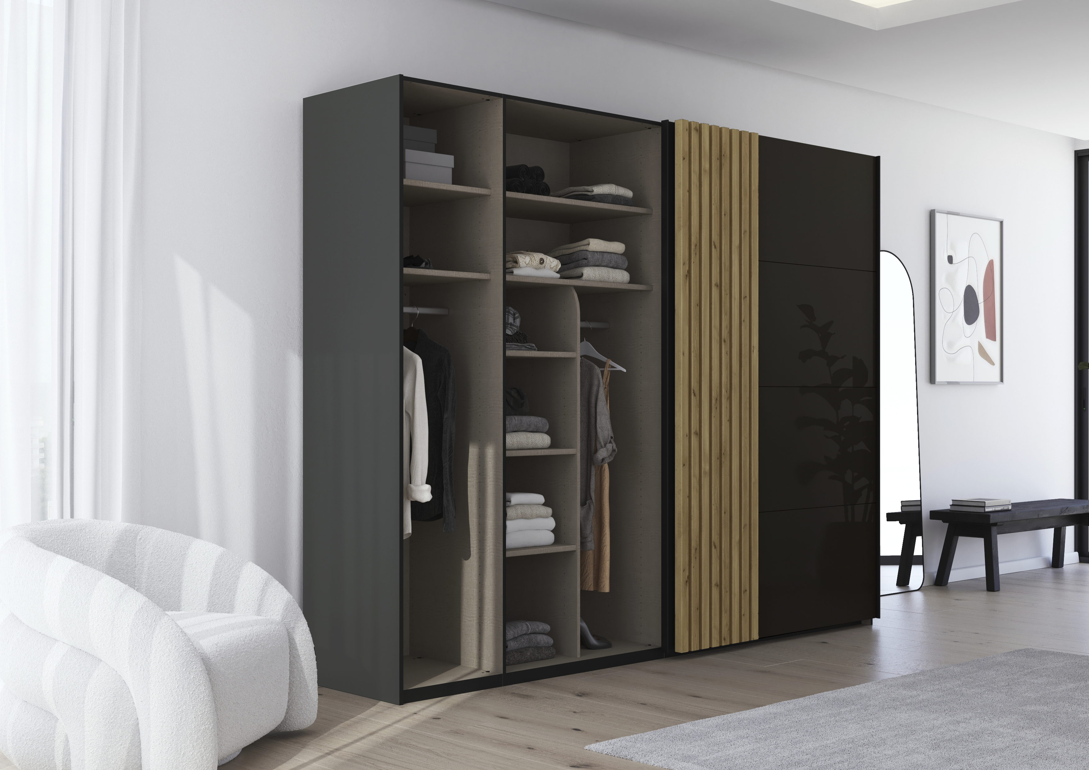 Die Möbelmarken von rauch – BLUE, ORANGE undBLACK – bieten für jeden Wohnstil die passende Lösung. Doch erst das richtige Möbelzubehör macht dein Möbelstück zu einem echten Stauraumwunder. Mit durchdachten Innenausstattungen wie Kleiderstangen, Fachböden, Schubkasteneinsätzen oder Hosenhaltern kannst du deinen Kleiderschrank individuell an deine Bedürfnisse anpassen – ganz gleich, ob du lieber hängst oder legst.