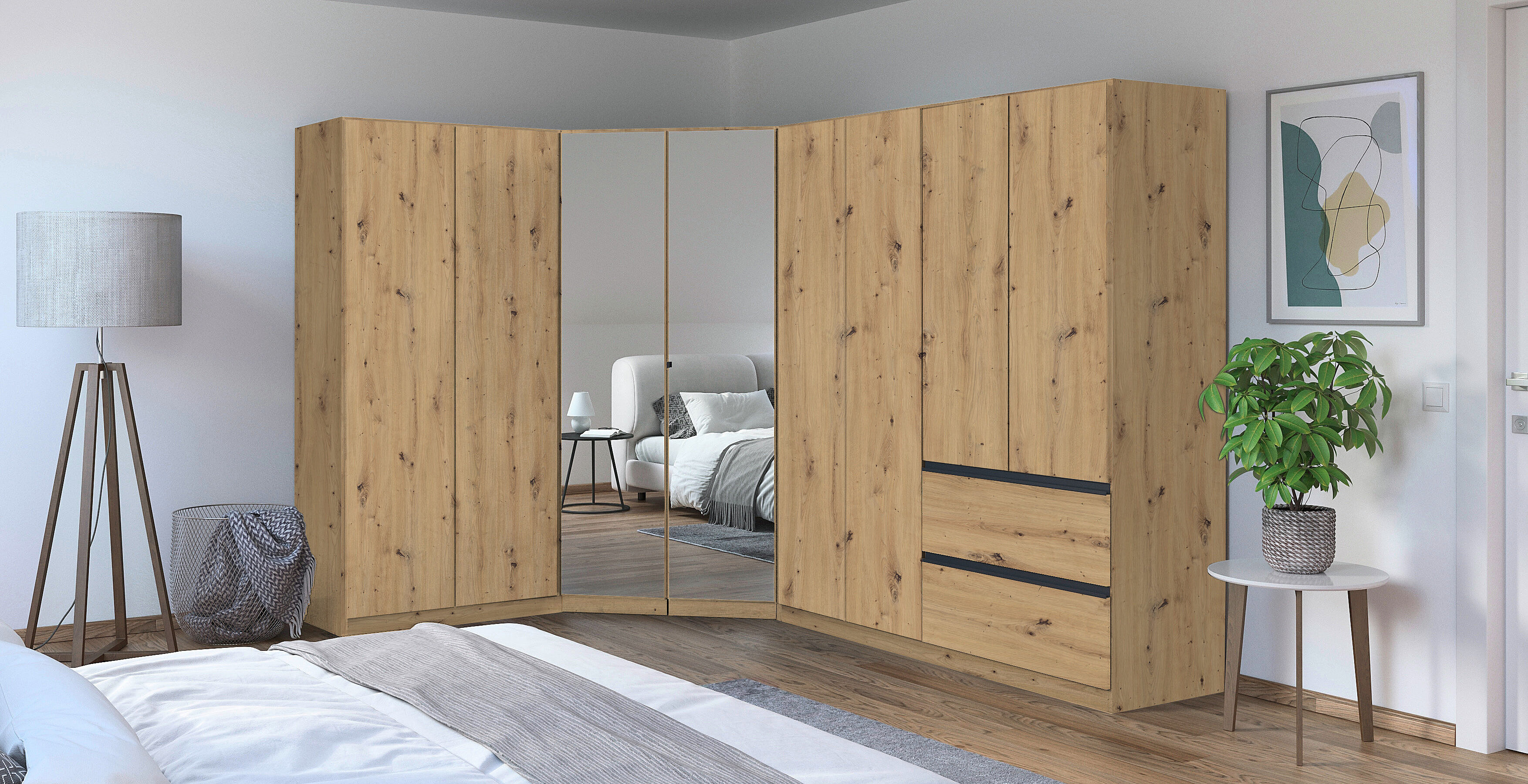 Der grifflose Drehtürenschrank Costa von rauch passt sich flexibel an jede Raumbedingung in deinem Zuhause an. Das clevere Schrankkonzept überzeugt nicht nur dank seines eleganten Frontdesigns in verschiedenen Dekorfarben, sondern auch die Möglichkeit, eine Eckschrank-Kombination zu wählen und den Raum somit optimal zu nutzen.