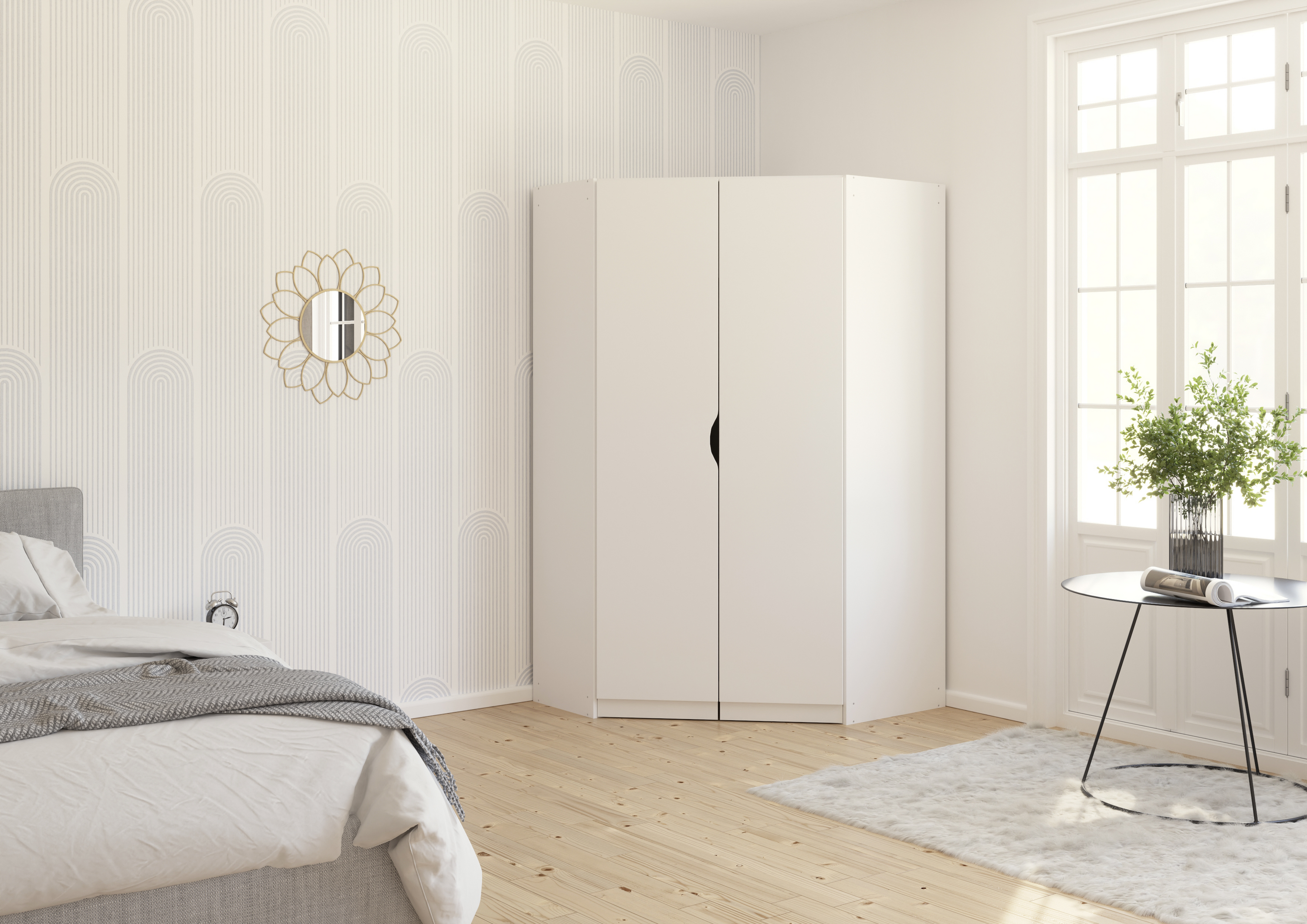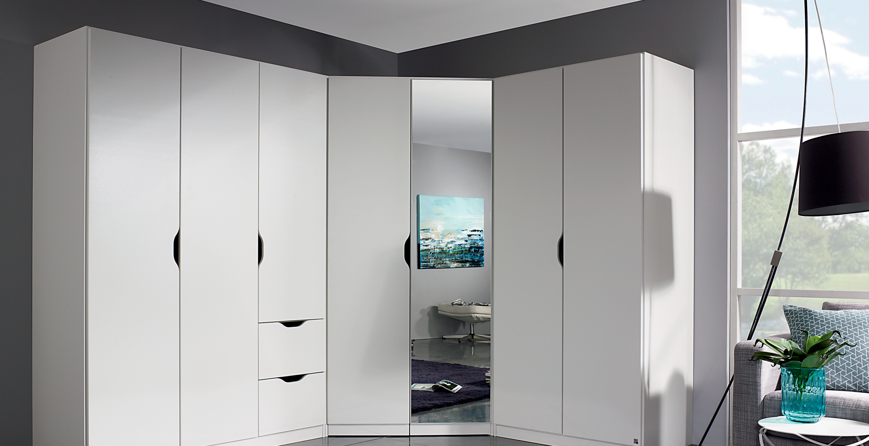 Freiham sorgt ganz in Weiß für perfekt genutzten Stauraum – und das auch über Eck. Das Besondere: Freiham kommt ohne Griffe aus, stattdessen hat er einfach Griffmulden, die seinen schlichten Stil noch einmal extra betonen.