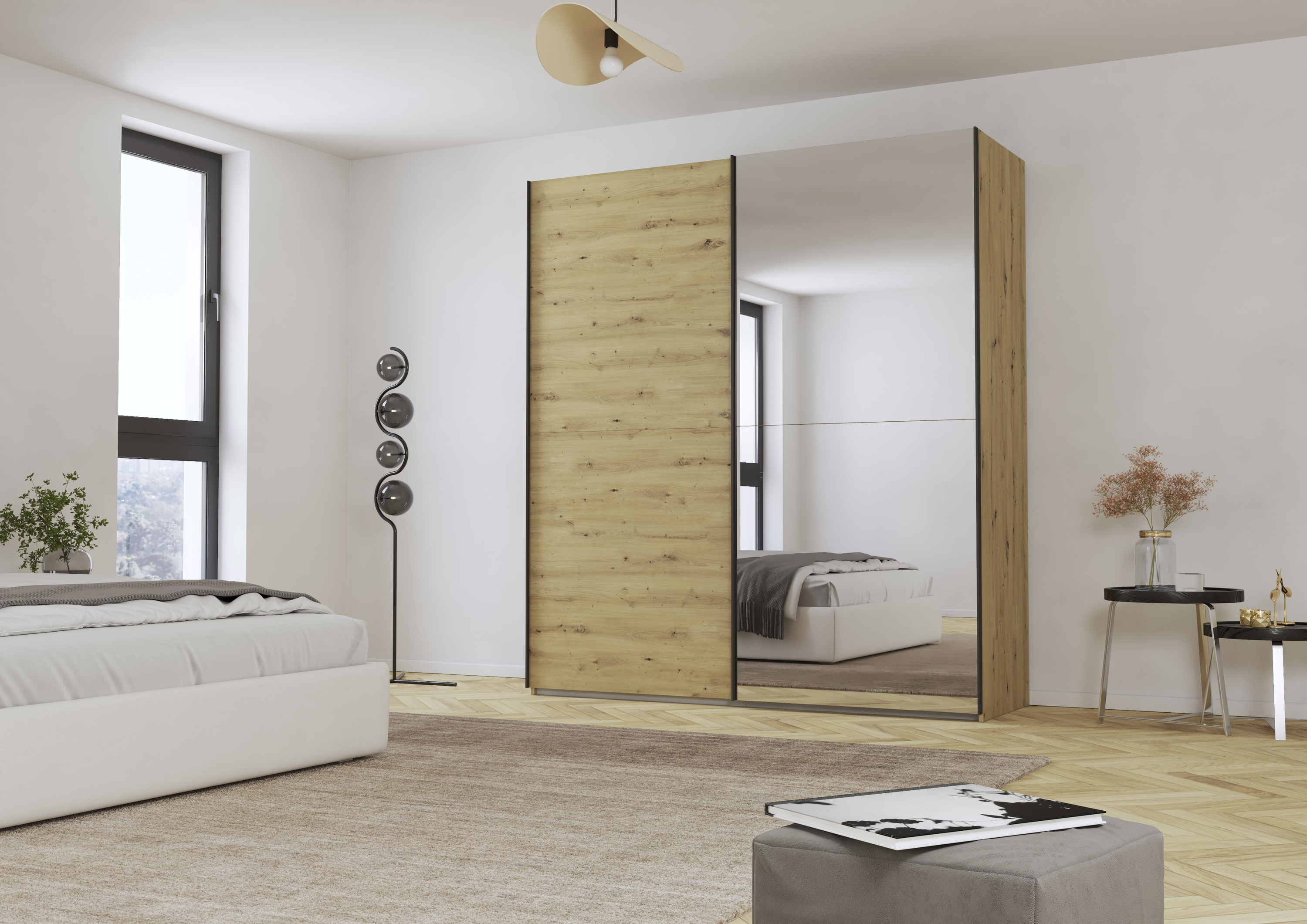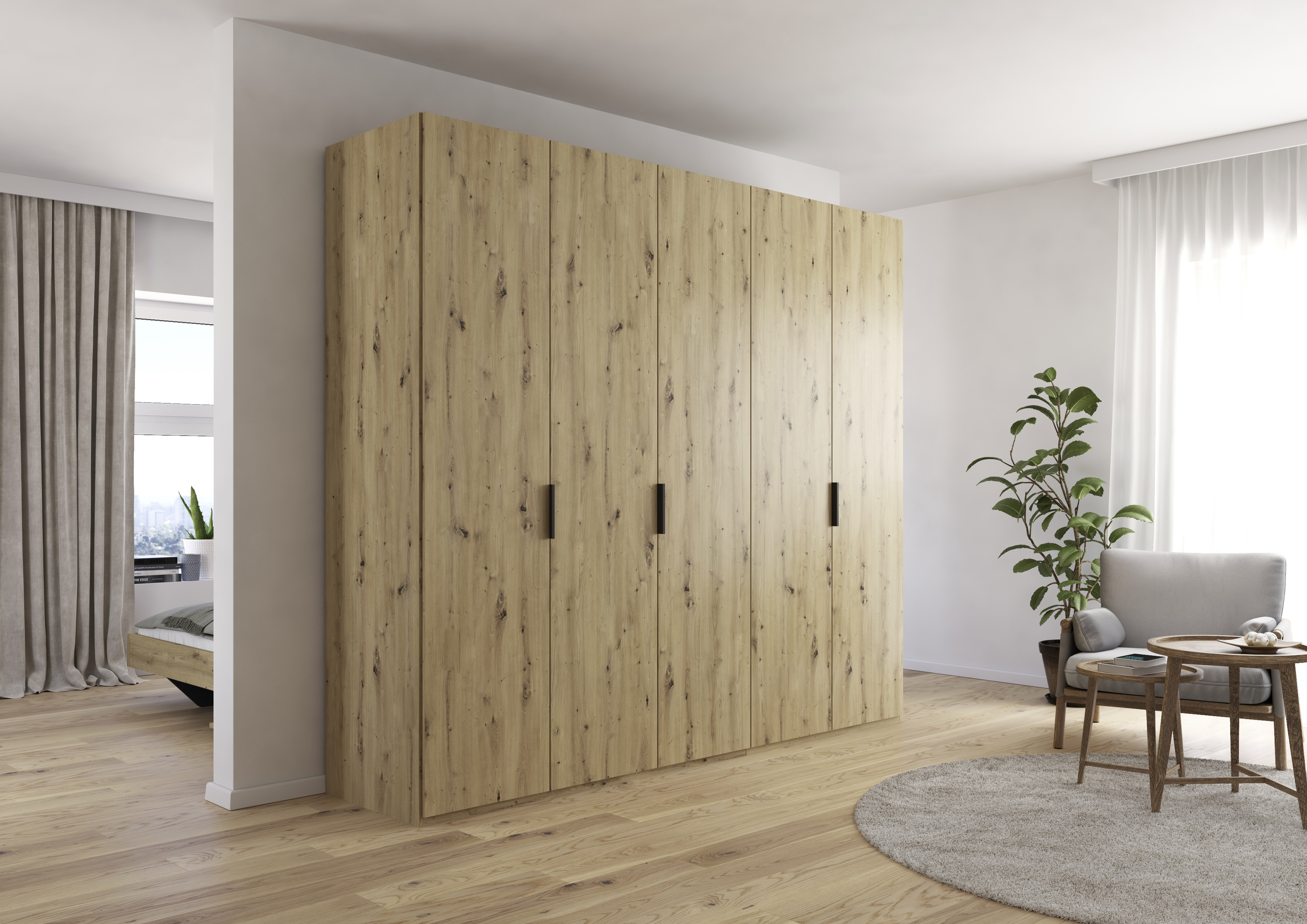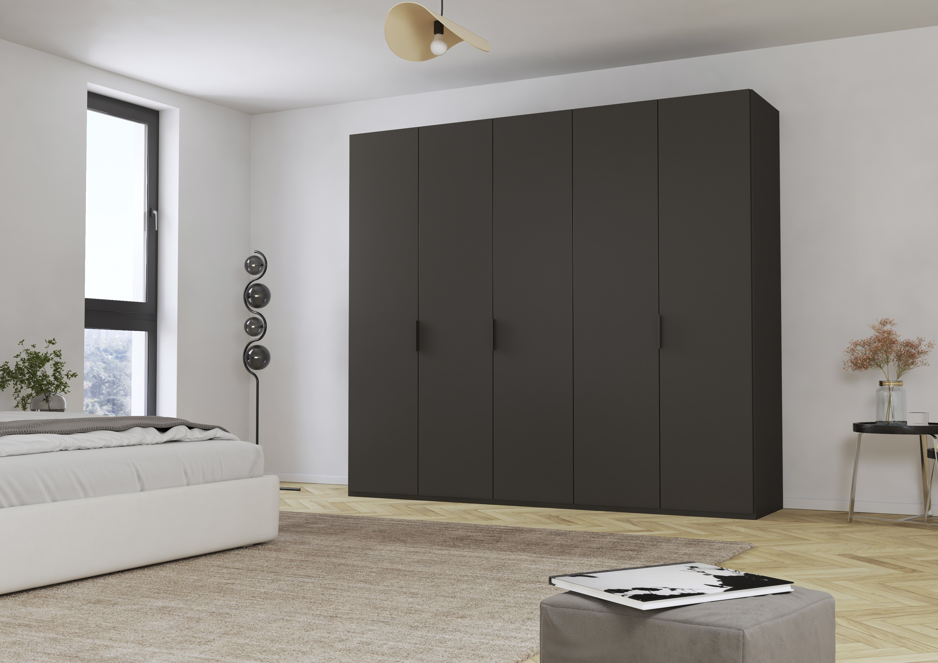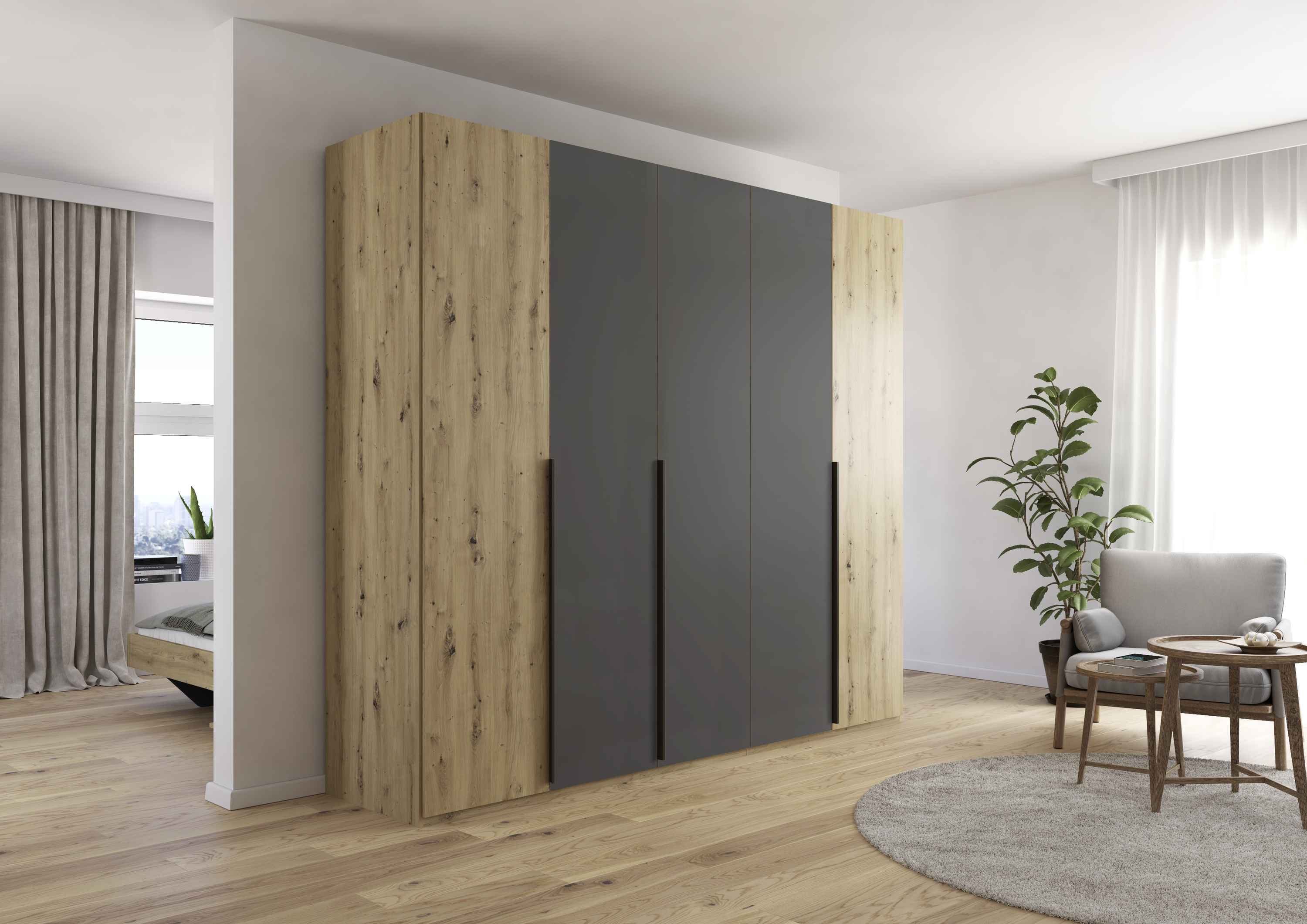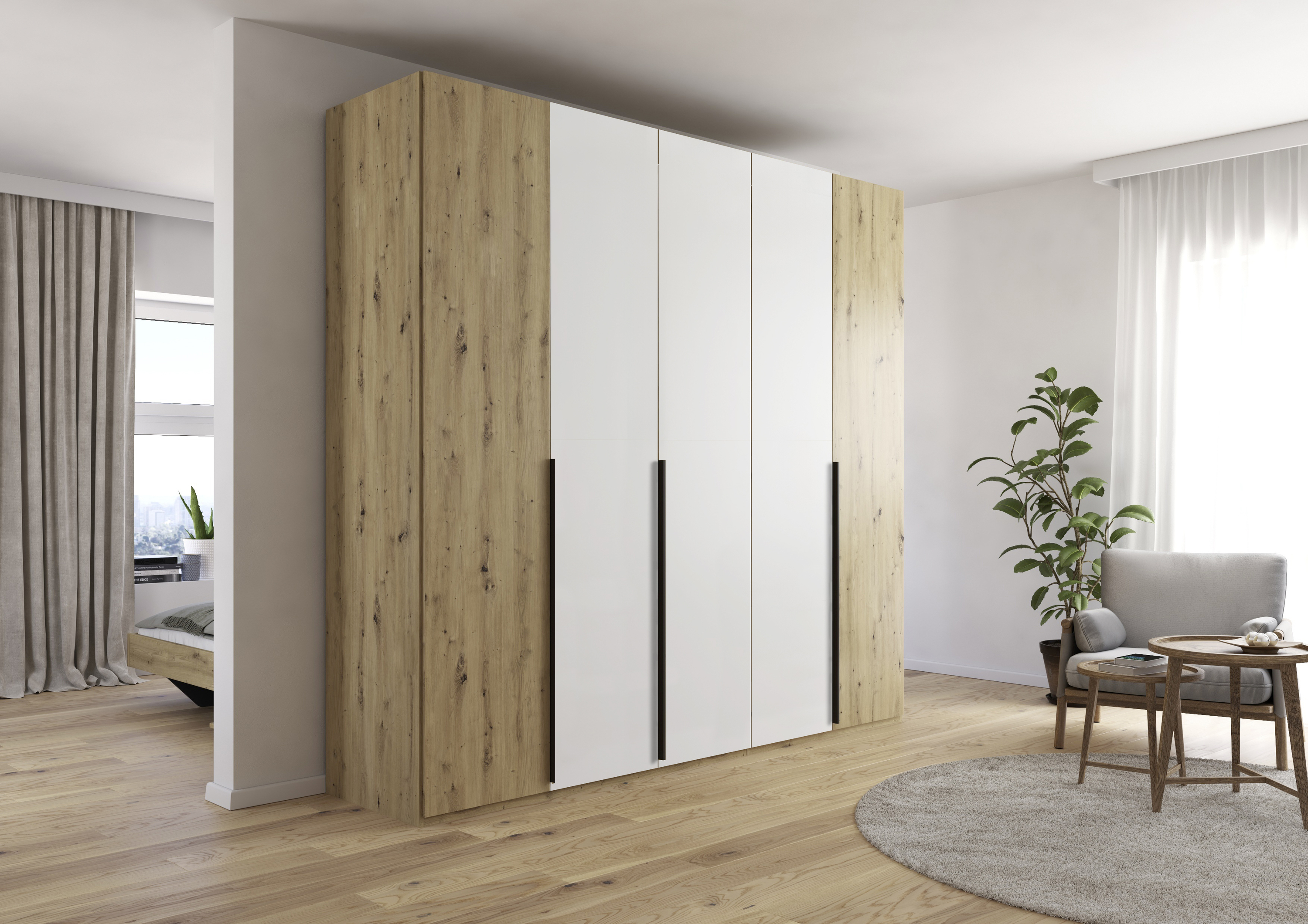 Das Schranksystem Fifty bietet dir die Möglichkeit, deinen Kleiderschrank ganz nach deinen individuellen Bedürfnissen und räumlichen Gegebenheiten zu gestalten. Kombiniere einzelne Elemente zu einem Schranksystem, das perfekt auf deinen Stil und deine Anforderungen abgestimmt ist. Mit einer großen Auswahl an Farben, Materialien und Griffen kannst du deinen Schrank nach deinem persönlichen Geschmack gestalten.