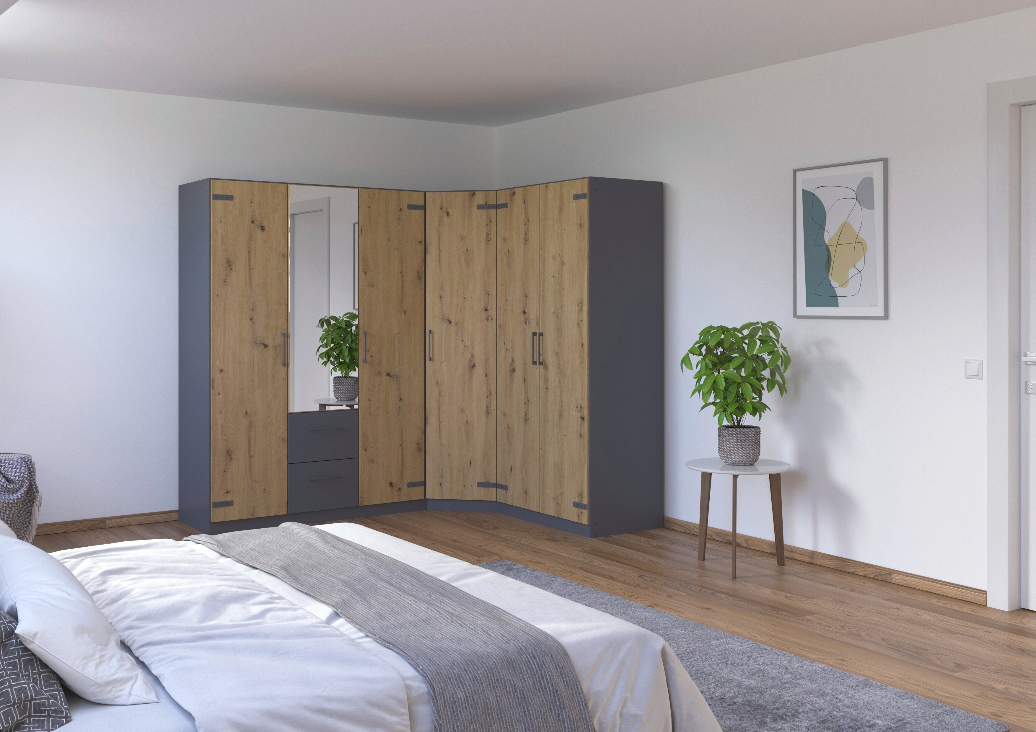 - Eckkleiderschränke nutzen den Raum effektiv und schaffen zusätzlichen Stauraum durch ihre optimale Ecklösung. So passt sich der Schrank individuellen Raumbedingungen perfekt an.