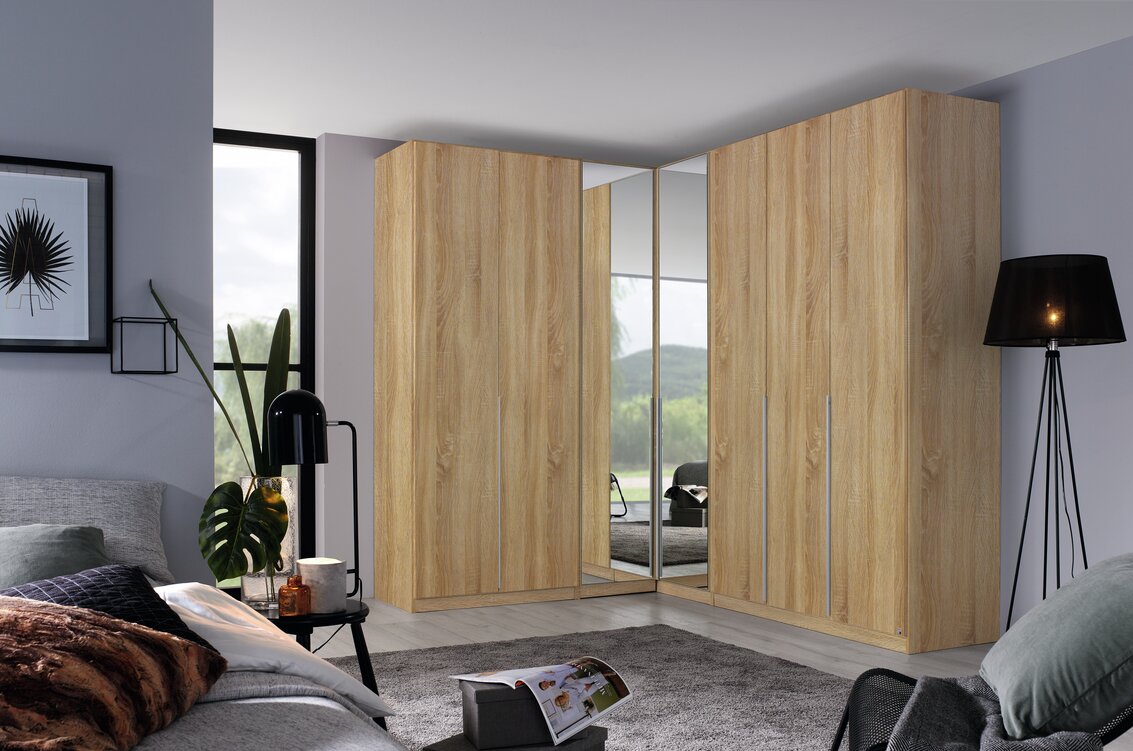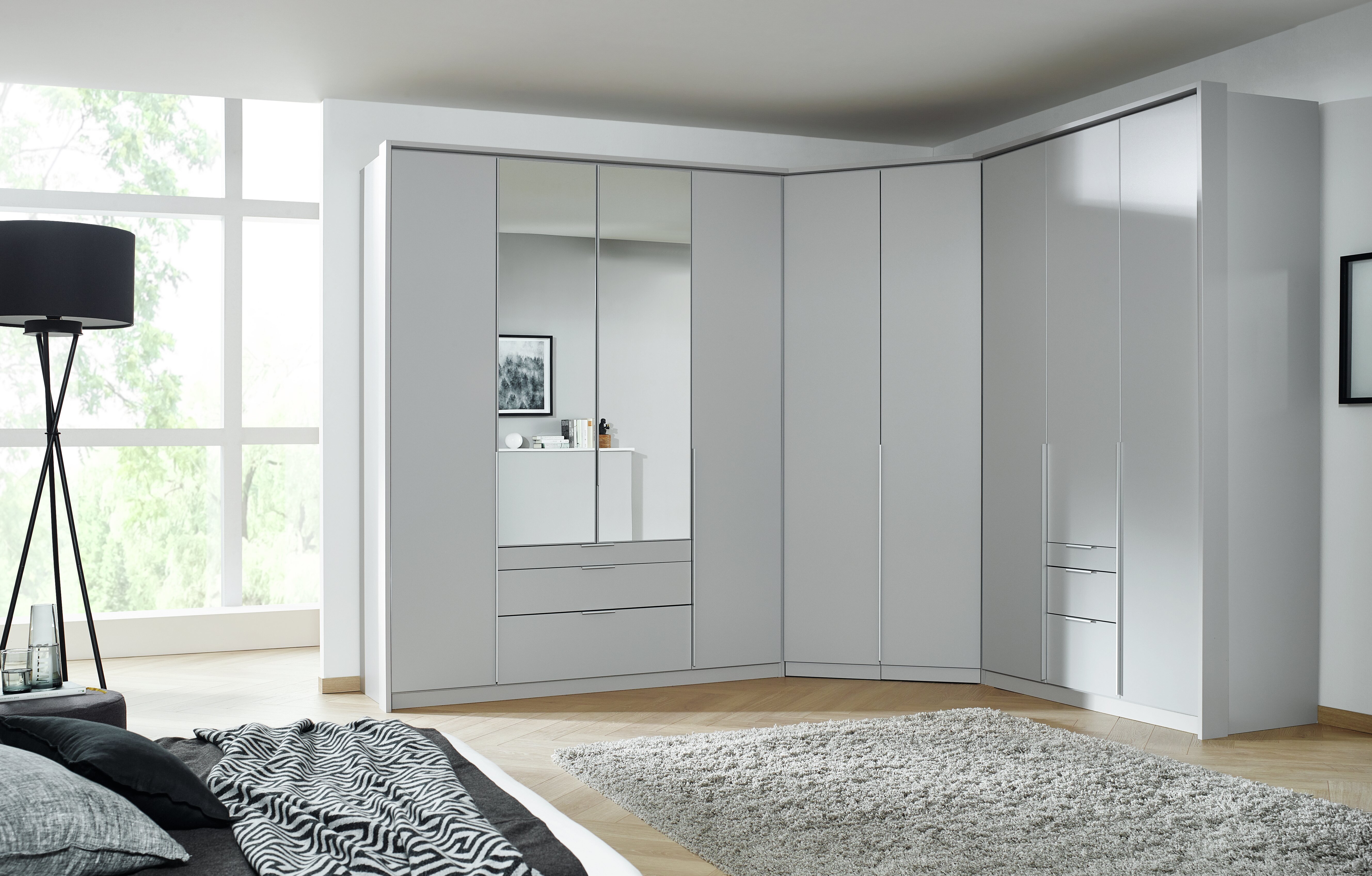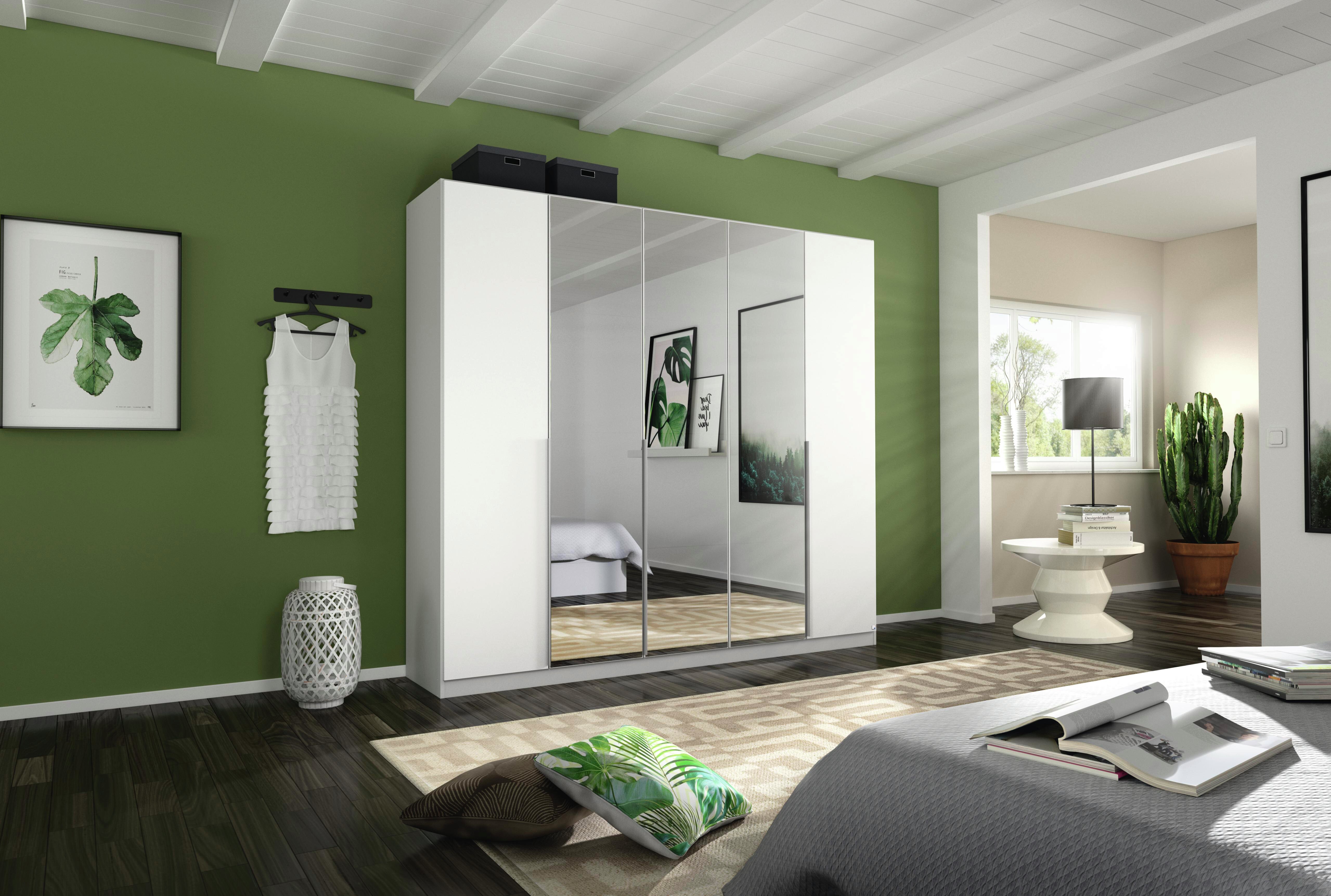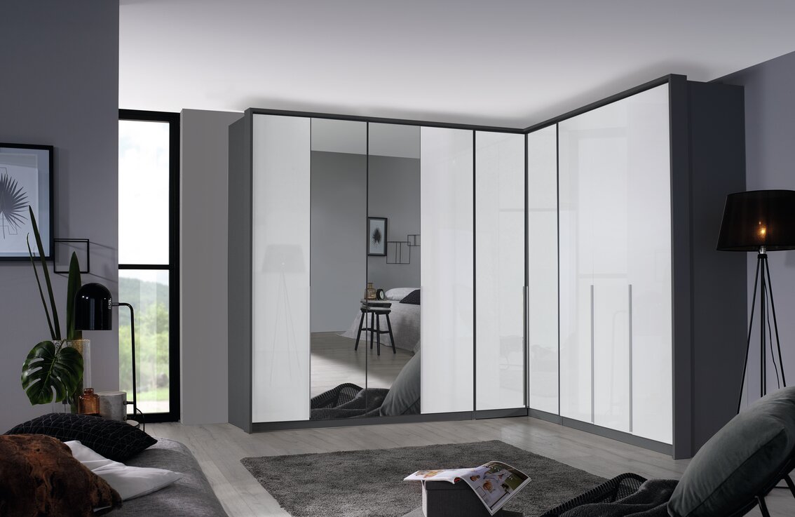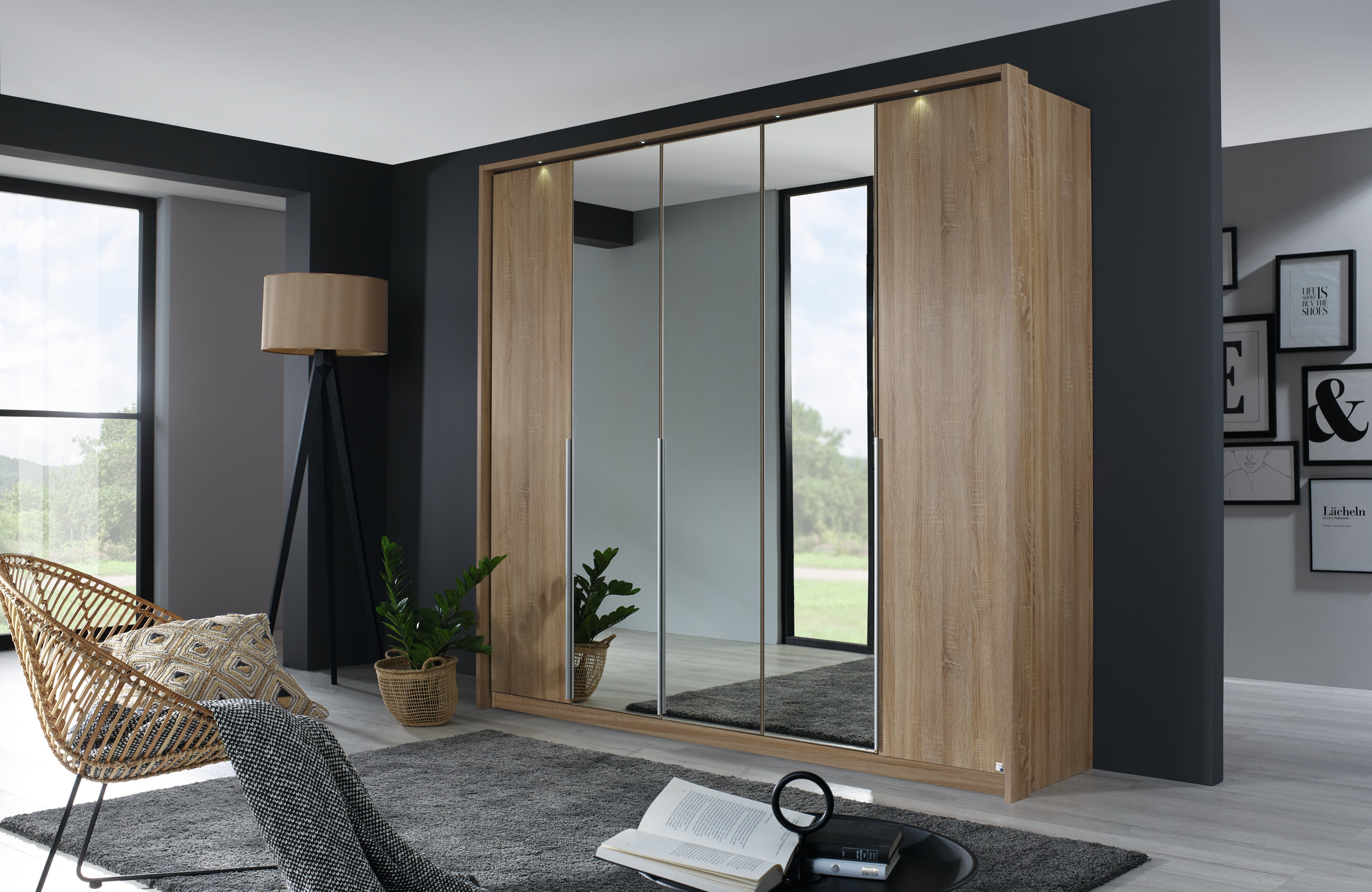 Die geräumigen Kleiderschränke der Serie Alabama von rauch wirken zeitlos und elegant zugleich. Hier werden klassische Drehtüren mit modernen Farbzusammenstellungen und einer eleganten, langen Griffleiste kombiniert.