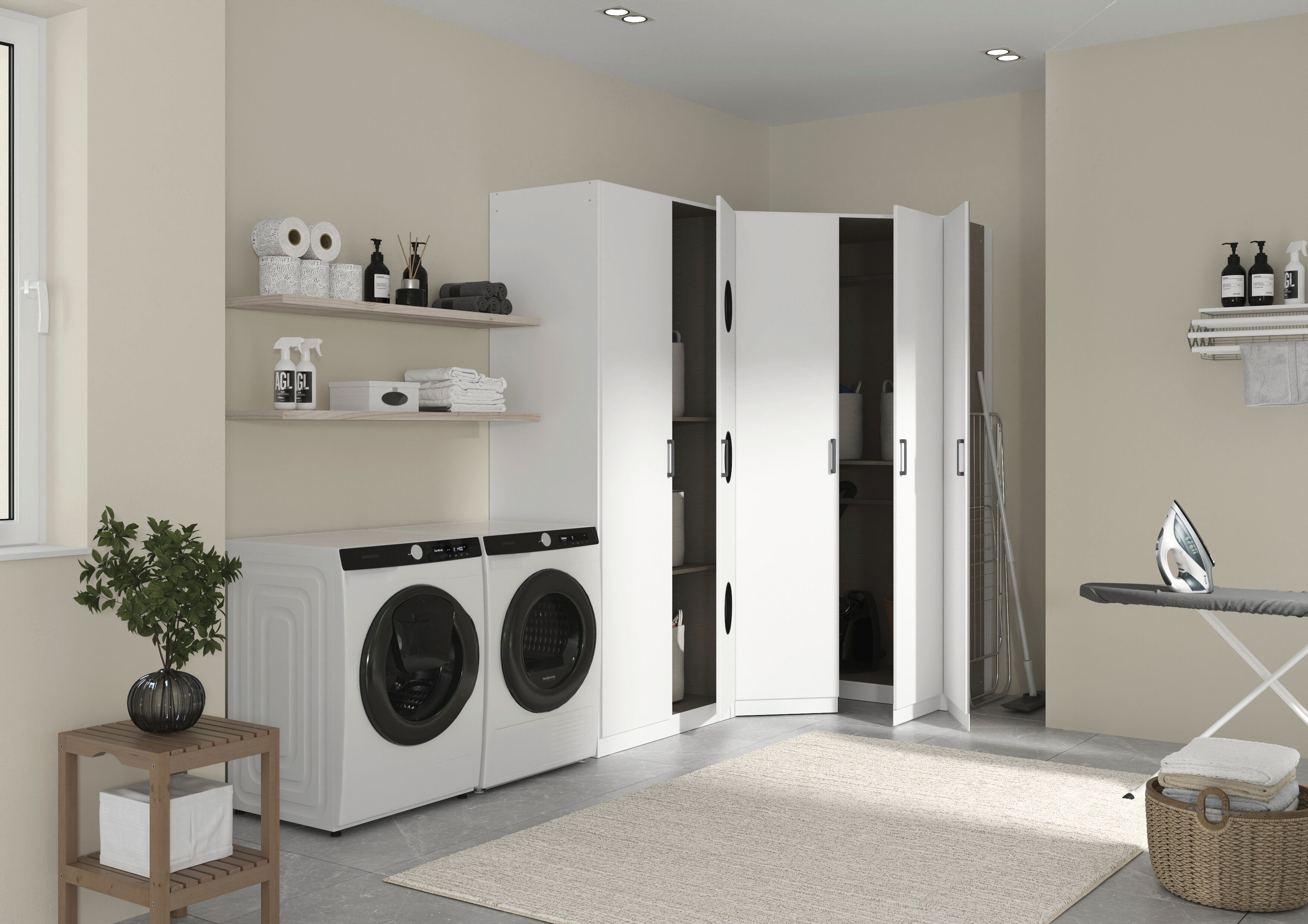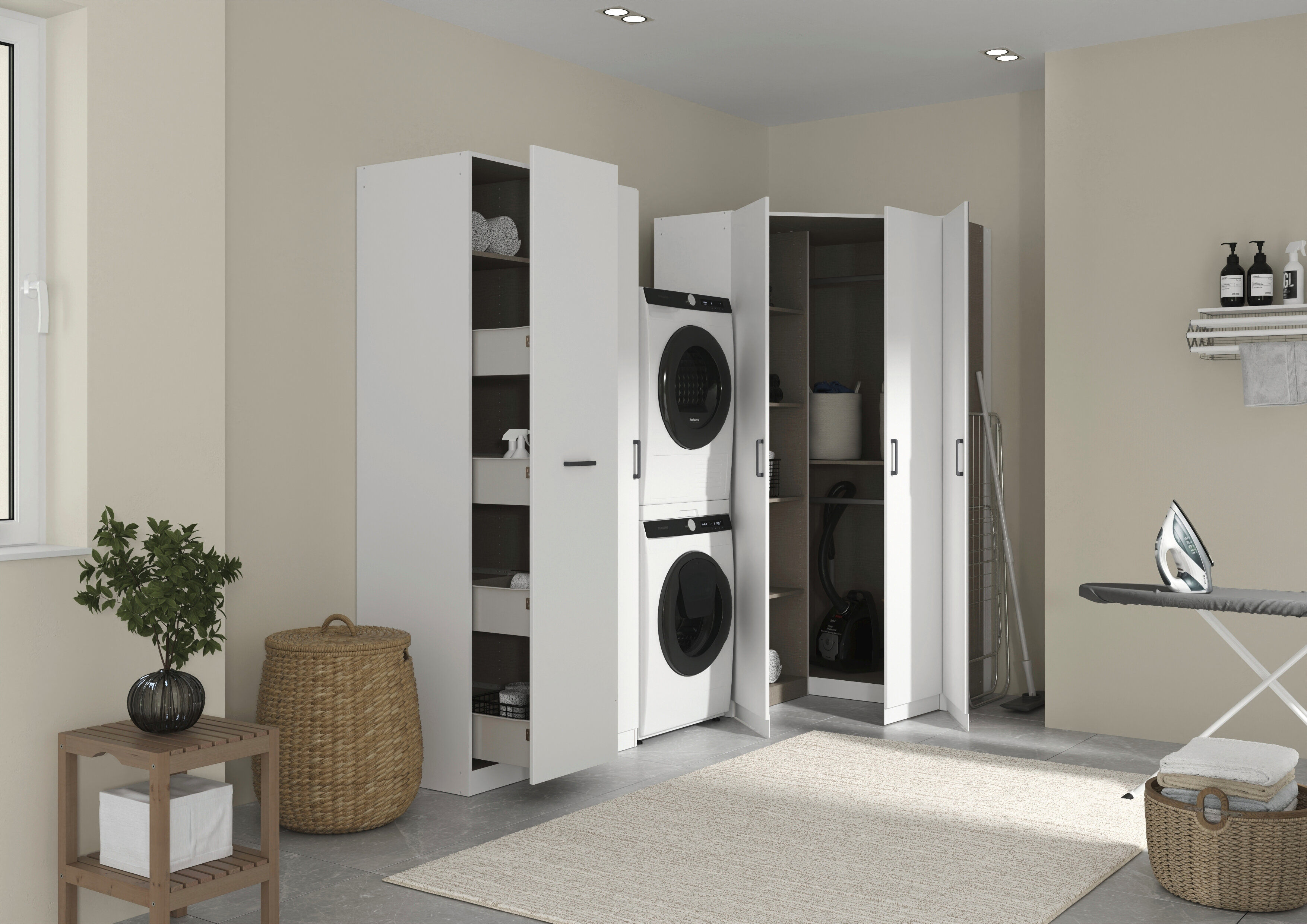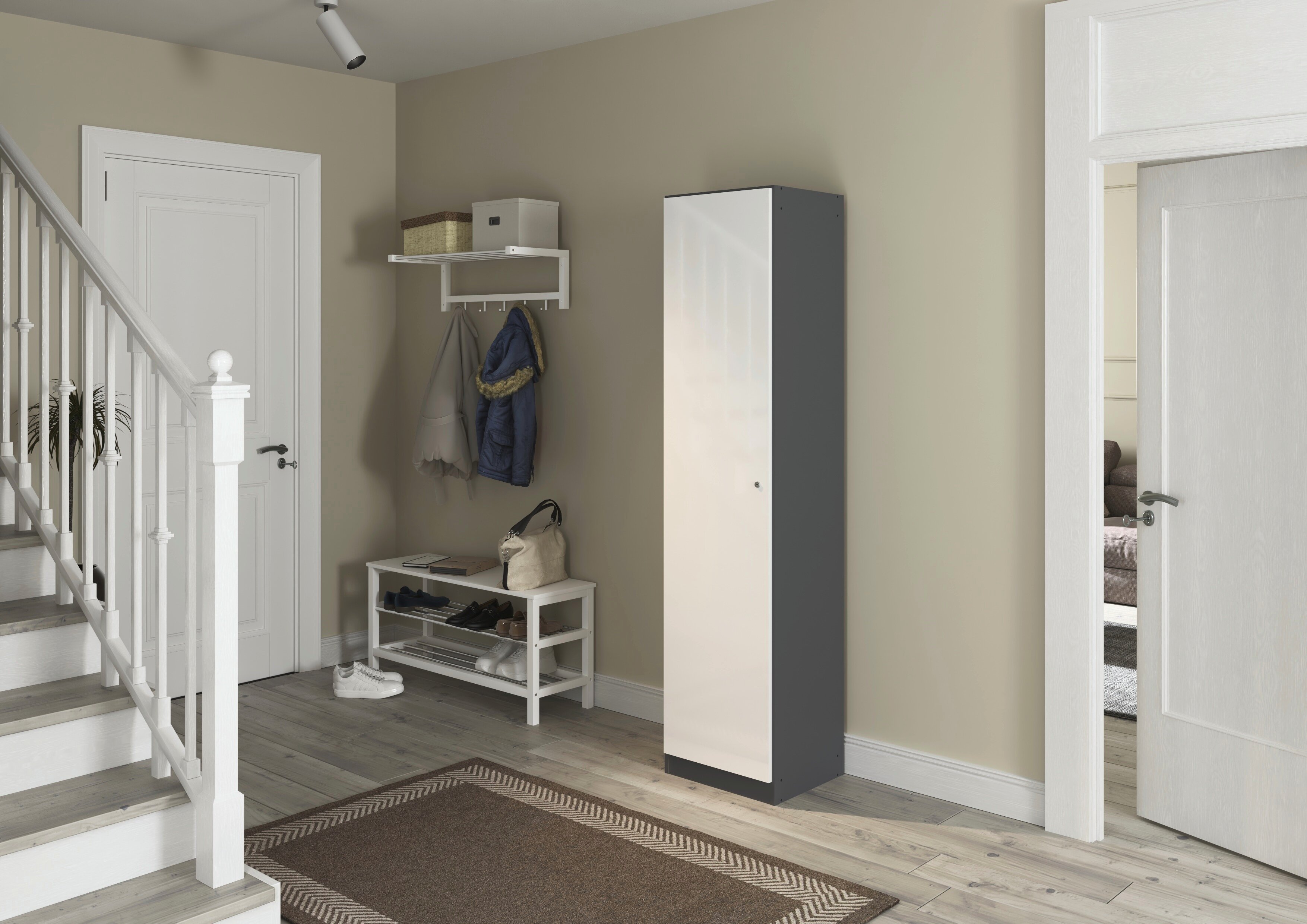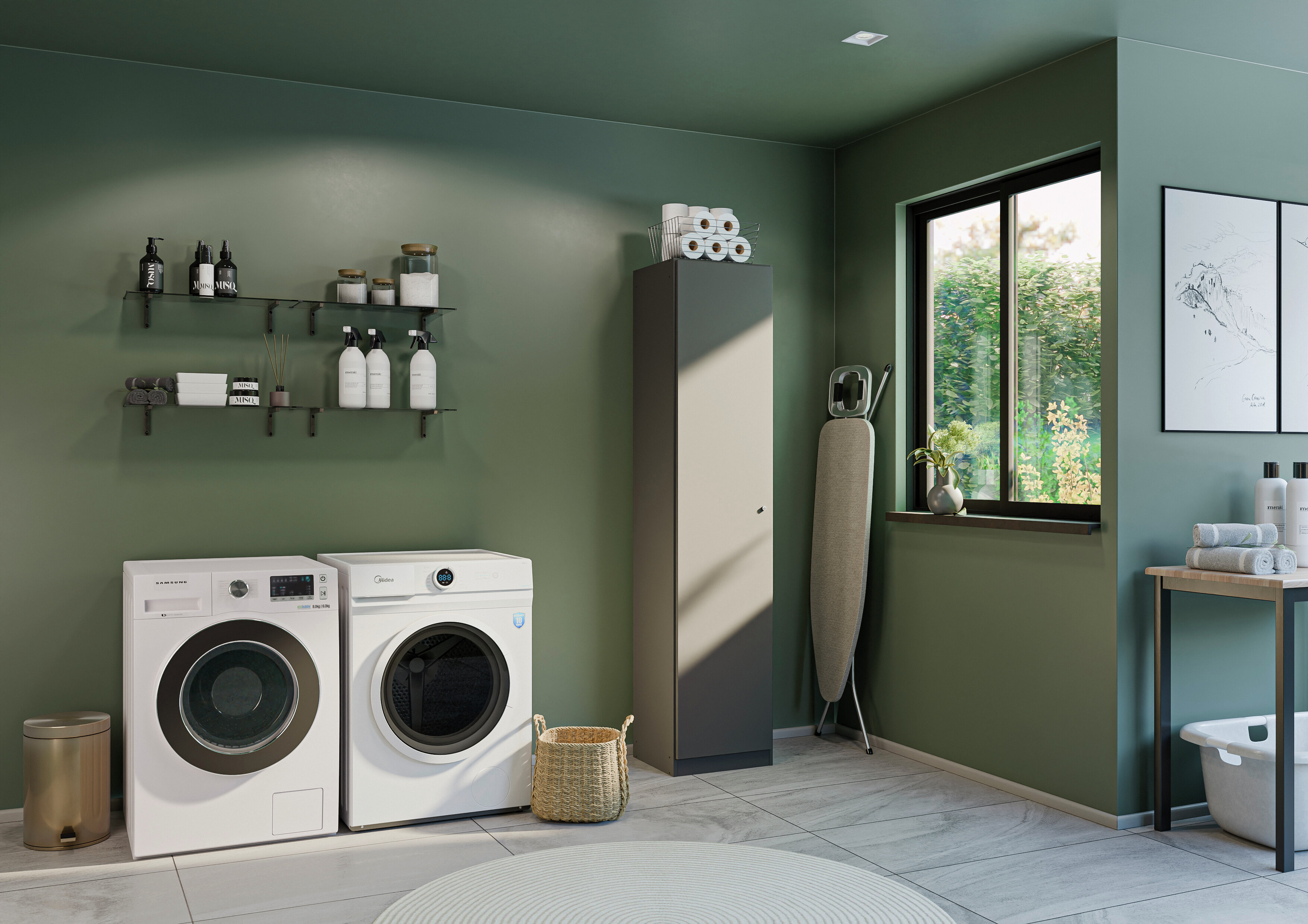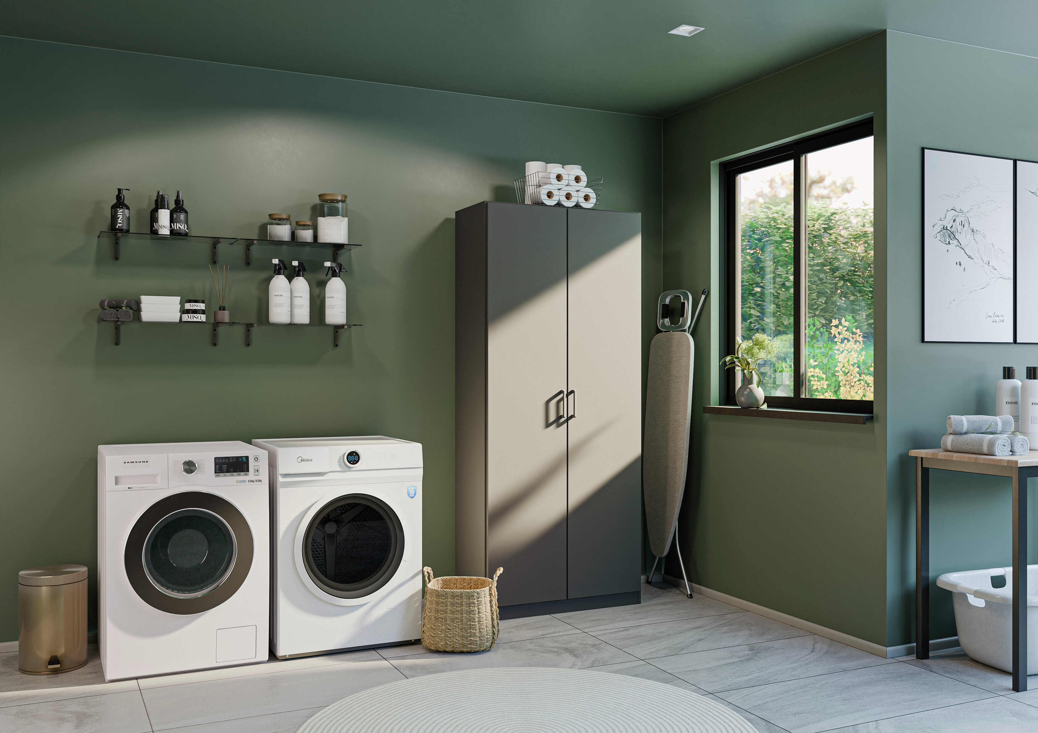 Die Möbel unserer Serie Allrounder machen ihrem Namen alle Ehre. Ob als Aufbewahrungsmöglichkeit im Wäscheraum, in der Hobby-Werkstatt, im Hausflur oder als moderne Schrank-Lösung für den Wohnbereich – vielseitig einsetzbar schaffen die Möbel praktischen Stauraum im ganzen Haus. Sie punktet mit einer kompakten Farbauswahl und verschiedenen Breiten und Höhen. So entsteht ein rundum gelungener Look und ermöglicht zeitgleich das stilvolle Wohnen, Arbeiten und Schlafen in einem Zimmer.