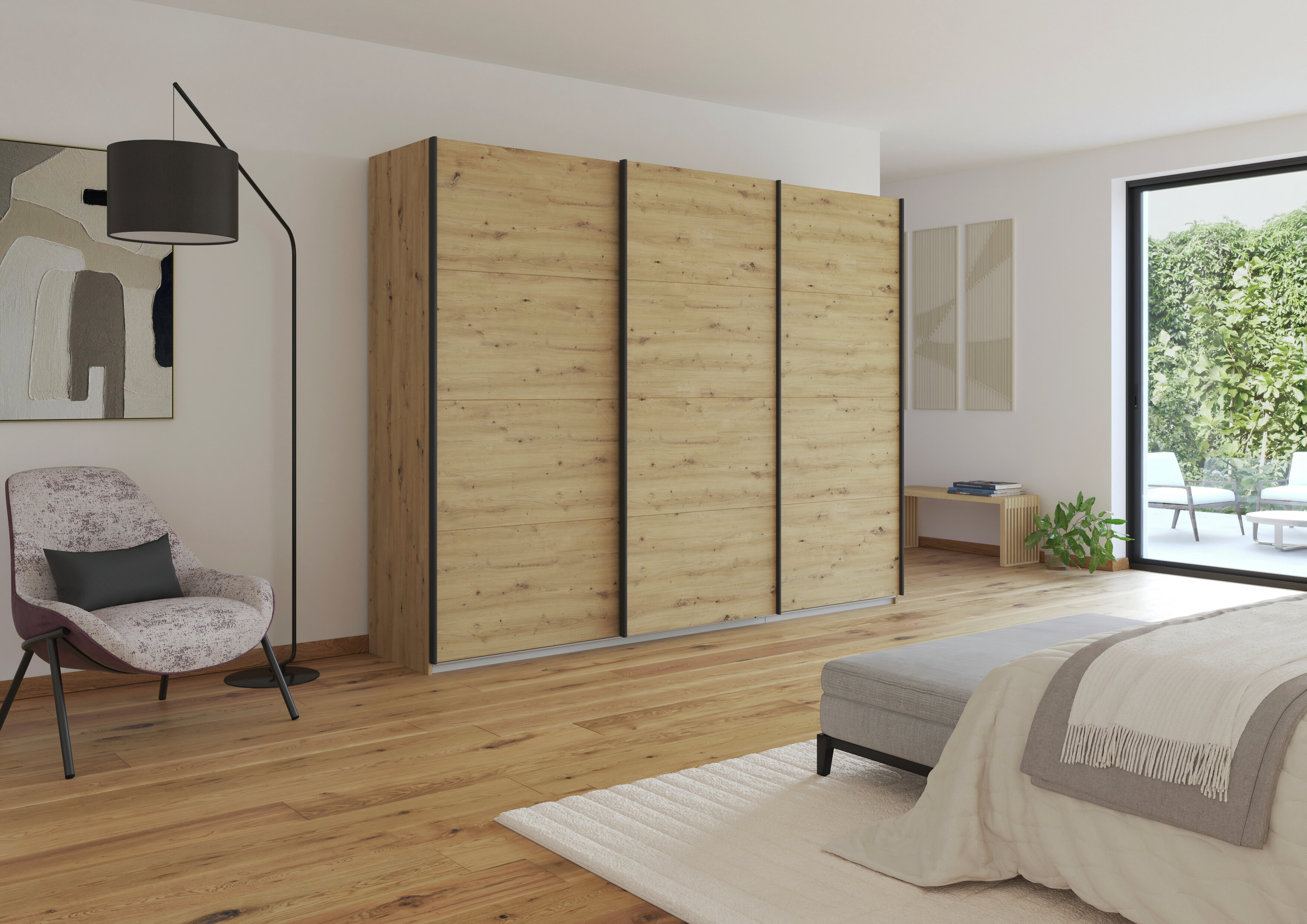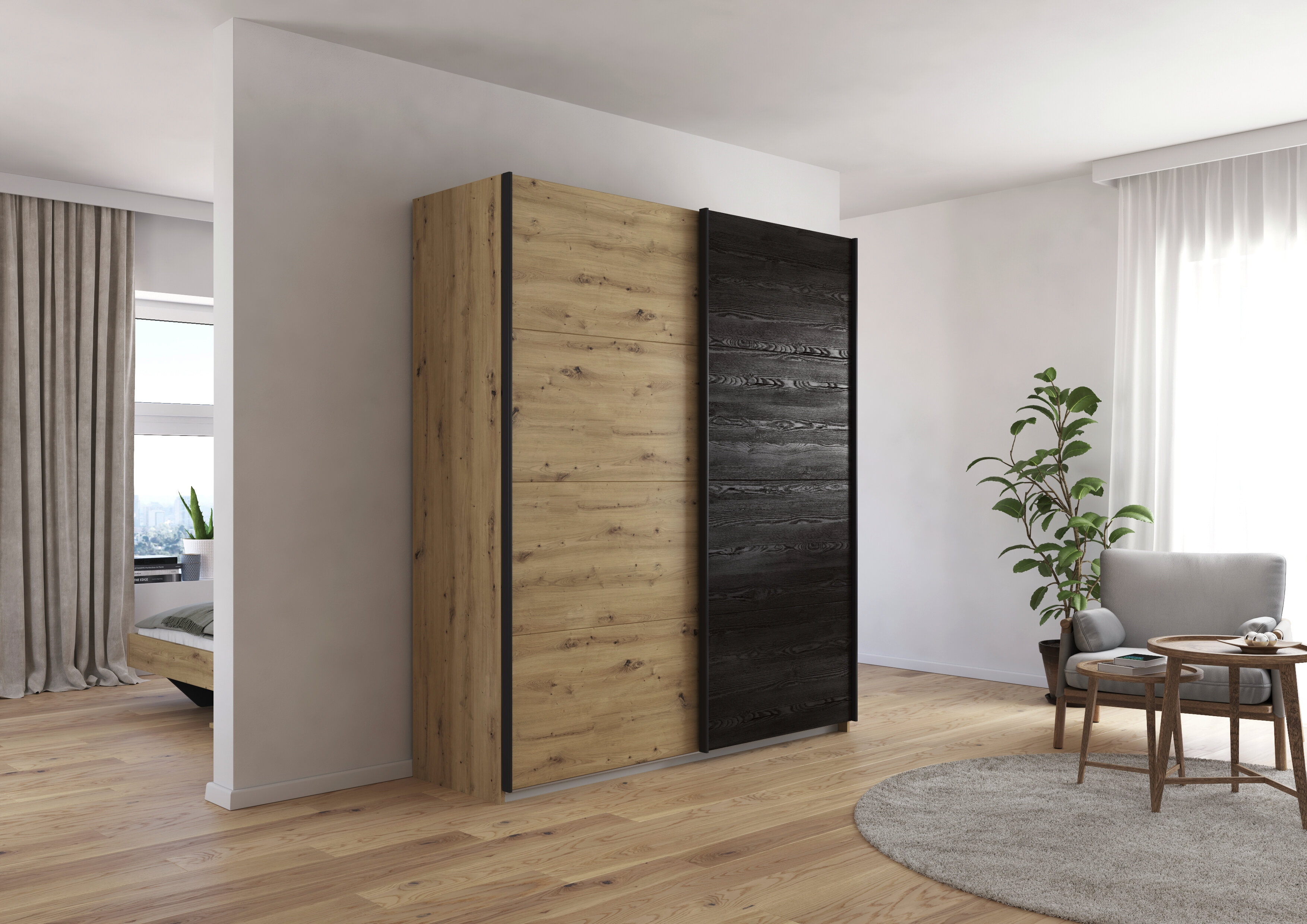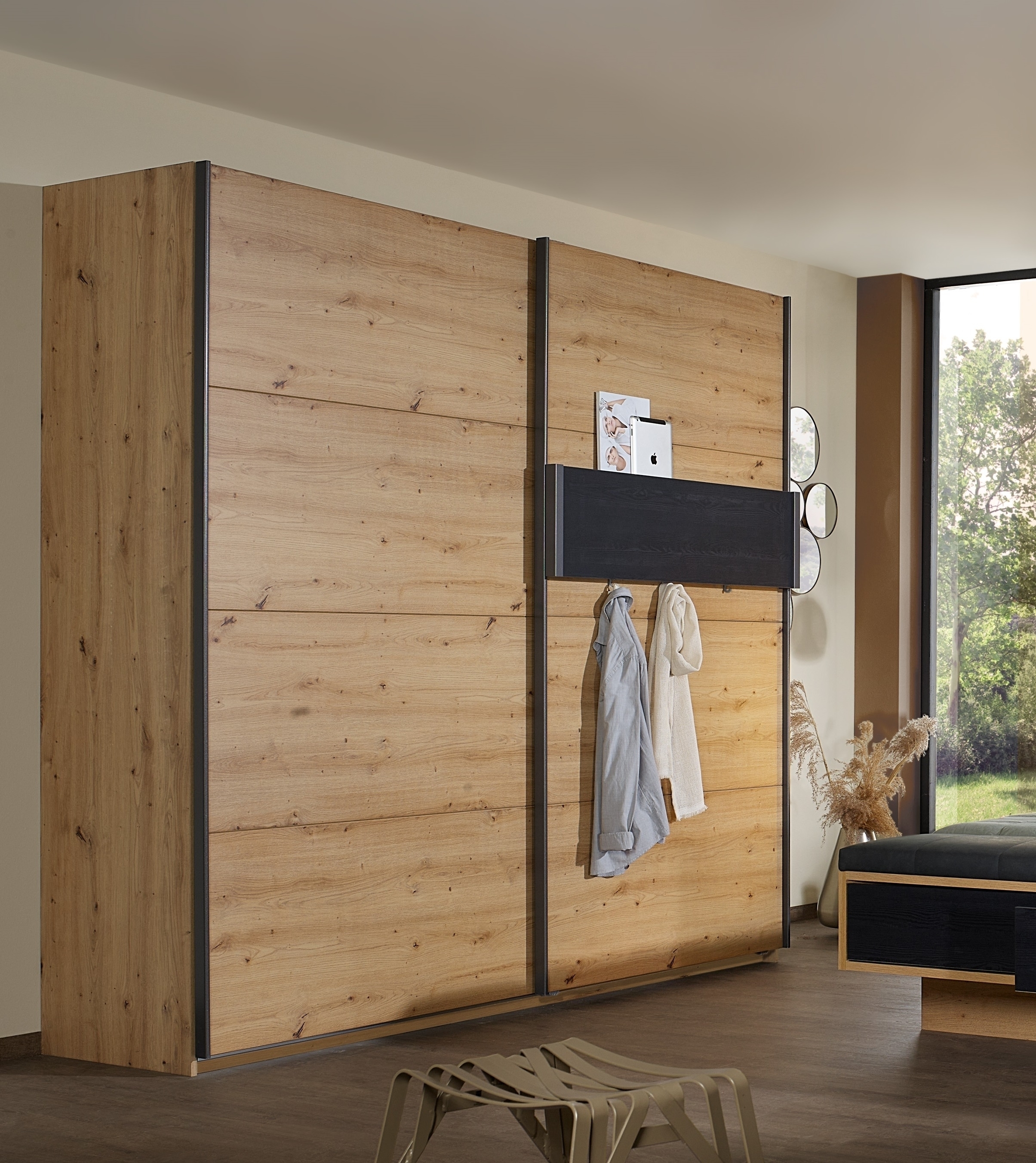 Der Schwebetürenschrank überzeugt nicht durch sein Äußeres, sondern auch durch großzügigen Stauraum im Inneren. Dank des Easy Slide Systems von rauch gleiten die Türen besonders sanft und angenehm leise auf und bieten dir einen großflächigen Blick auf einen geräumigen Innenraum. Du kannst den Schrank perfekt an deine Bedürfnisse anpassen dank der variabel einstellbaren Kleiderstangen und Einlegeböden und so die optimale Aufbewahrung gewährleisten für sämtliche Kleidungsstücke. Erhältlich in verschiedenen Breiten fügt sich der Kleiderschrank in jeden Raum optimal ein.