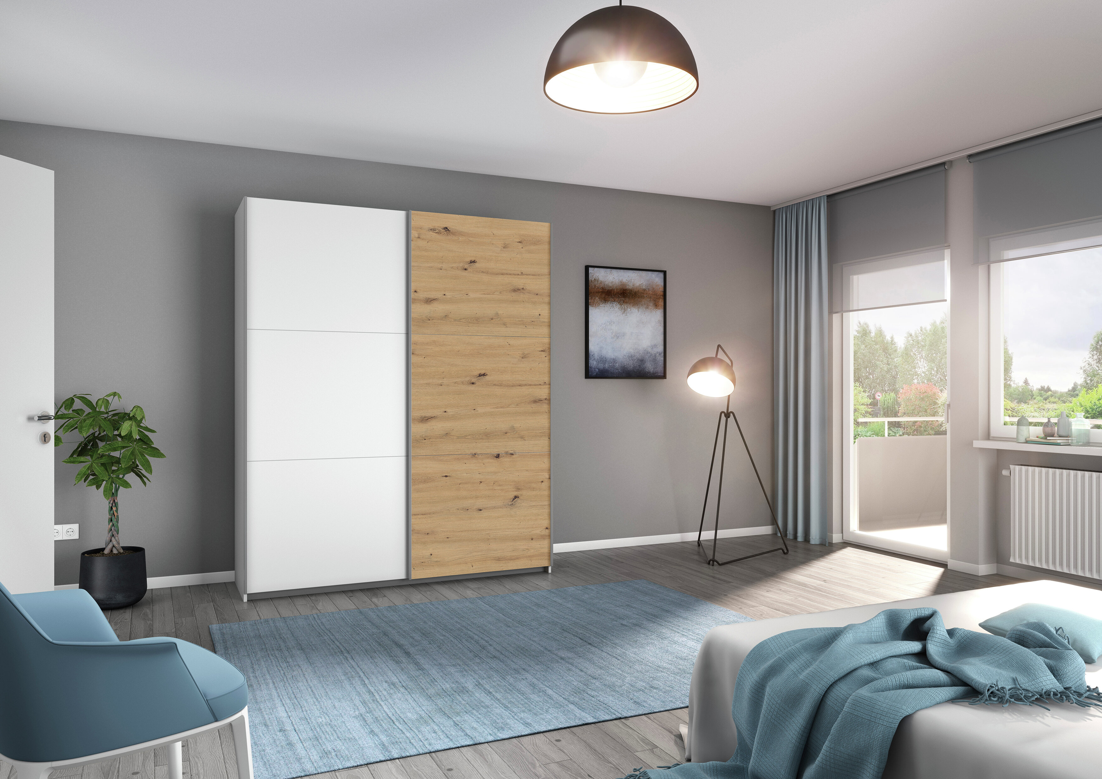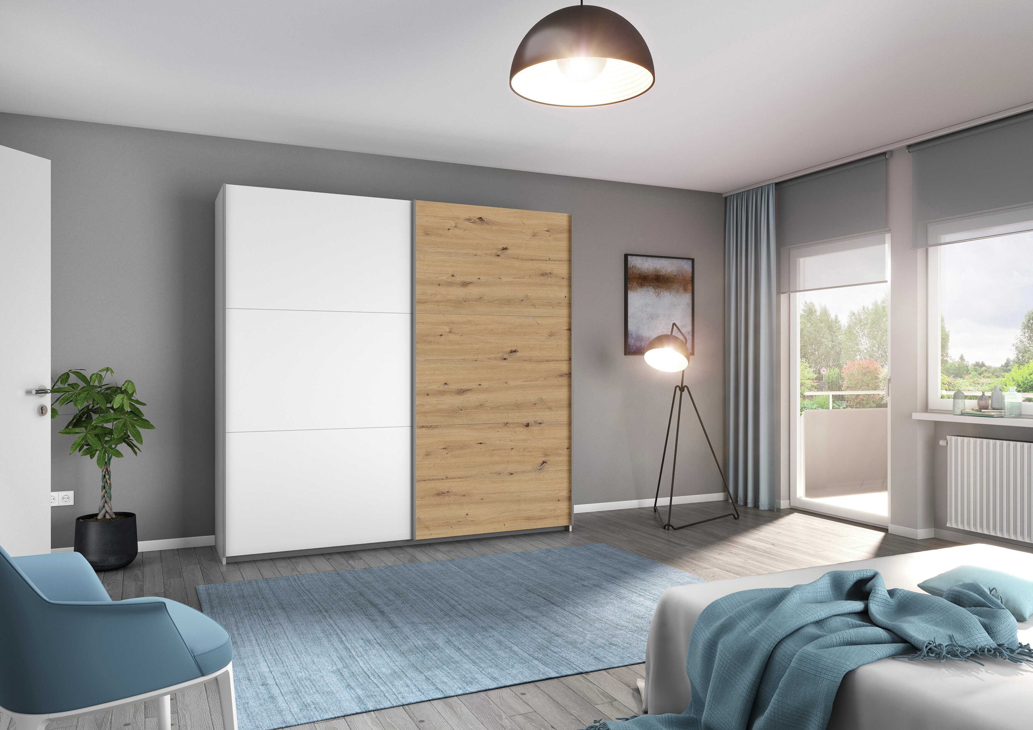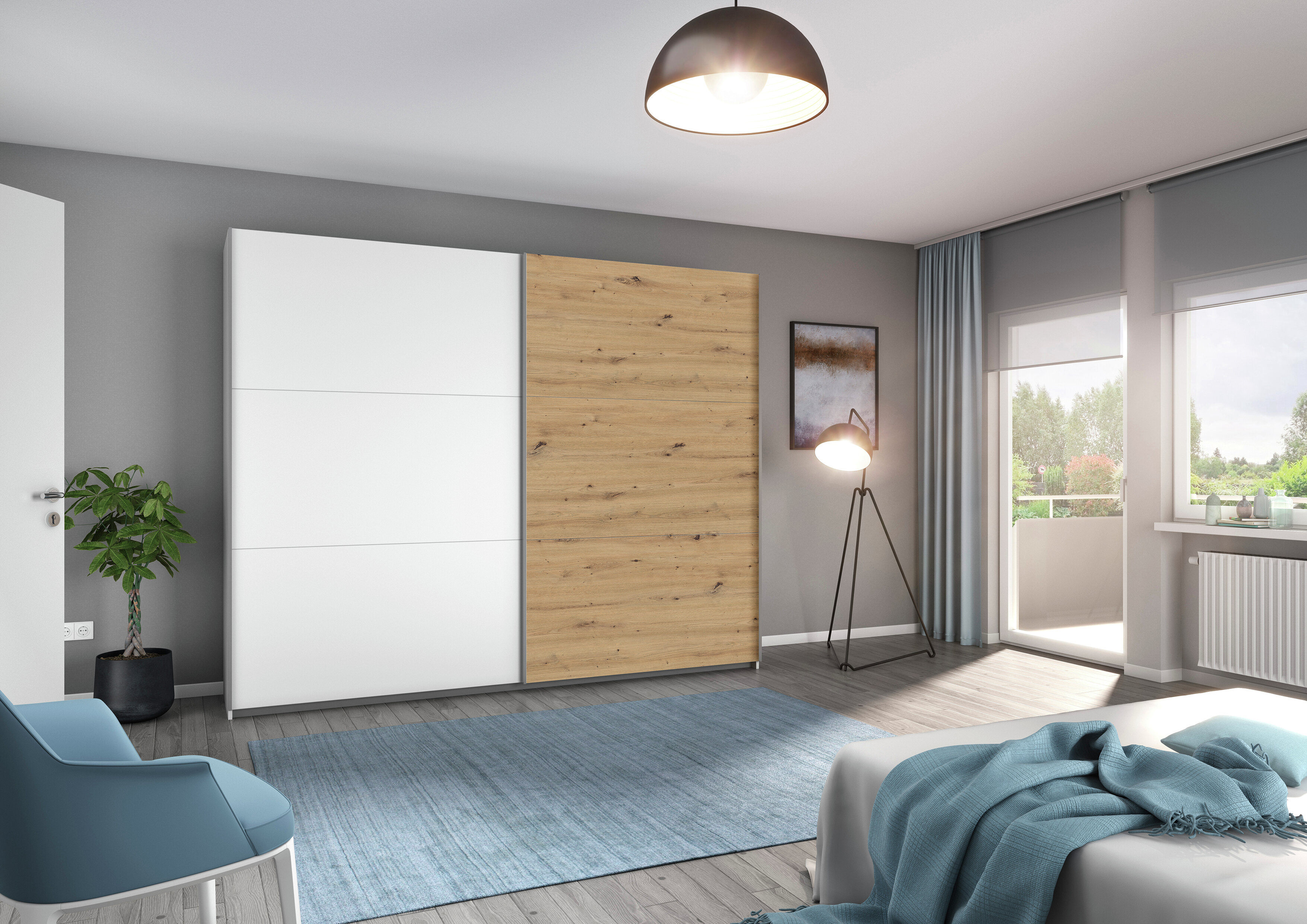 Mit dem rauch Schwebetürenschrank »Aurelio« zieht ein zeitloser Klassiker in dein Zuhause ein. Dank seiner verschiedenen Breiten und der modernen Auswahl an Dekorfarben und Hochglanzfronten passt der Kleiderschrank sich optimal deinem Einrichtungsstil an.