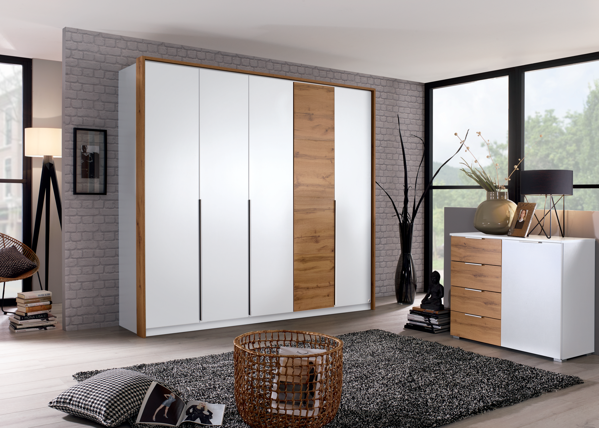 Die Drehtürenschränke aus dem Programm Bellezza machen optisch mit einem eleganten Frontdesign auf sich aufmerksam und überzeugen dank smarter Innenausstattung auch durch ihre inneren Werte. Ausgestattet mit praktischem Zubehör – wie Schubkasteneinsatz und zusätzlichen Fachböden – wird dir Ordnung halten leichtgemacht. Das besondere Highlight bei Bellezza: Die farblich abgesetzte Schranktür glänzt auch innen mit pfiffigen Funktionen wie Hakenleiste, Ablage und Utensilienstange, und sorgt so für eine Expansion an Stauraum.