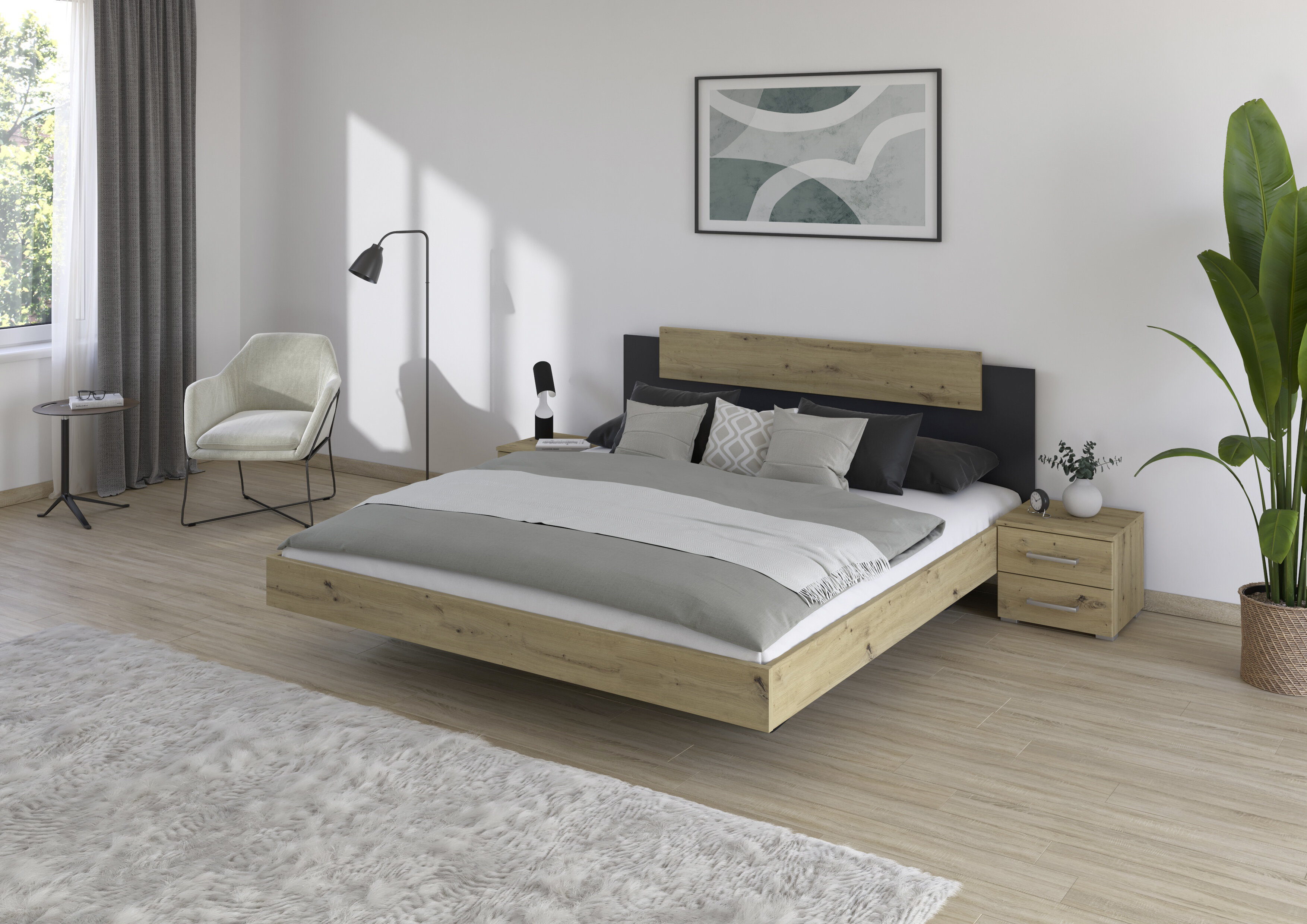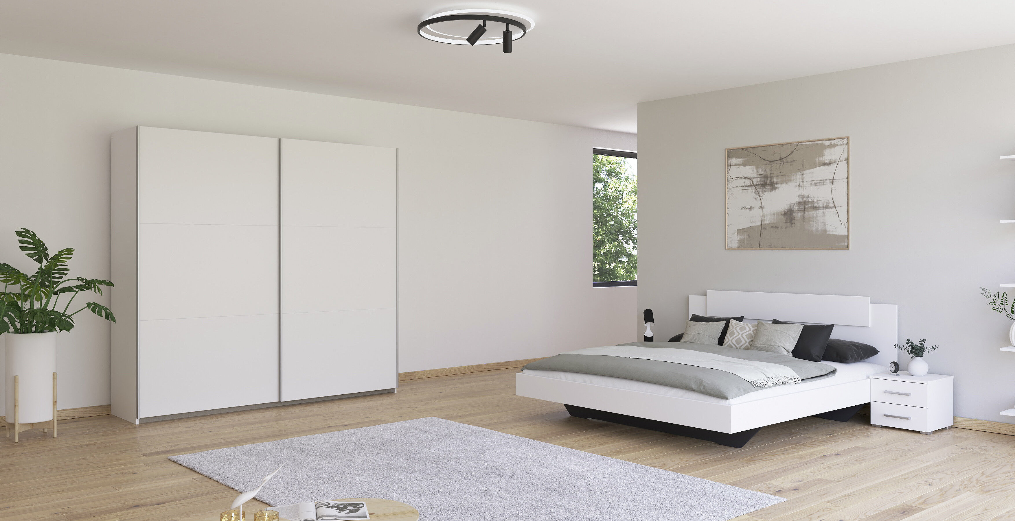 Mit Borba und Borba-Extra wird’s gemütlich im Schlafzimmer. Das perfekte Zusammenspiel zwischen formaler Geradlinigkeit und harmonischen Farb-Kompositionen spiegelt sich bei den Betten, Nachttischen, Schränken und Kommoden der Serien wider. Beim Schrank darfst du entscheiden: Schwebetüren oder lieber Drehtüren? Beide Varianten sorgen für ordentlich Stauraum im Schlafzimmer. Kombiniert mit passendem Bett, Nachttischen und Kommode wird das Modell zum Rundum-Wohlfühl-Paket. Genau das Richtige für ruhige Nächte!