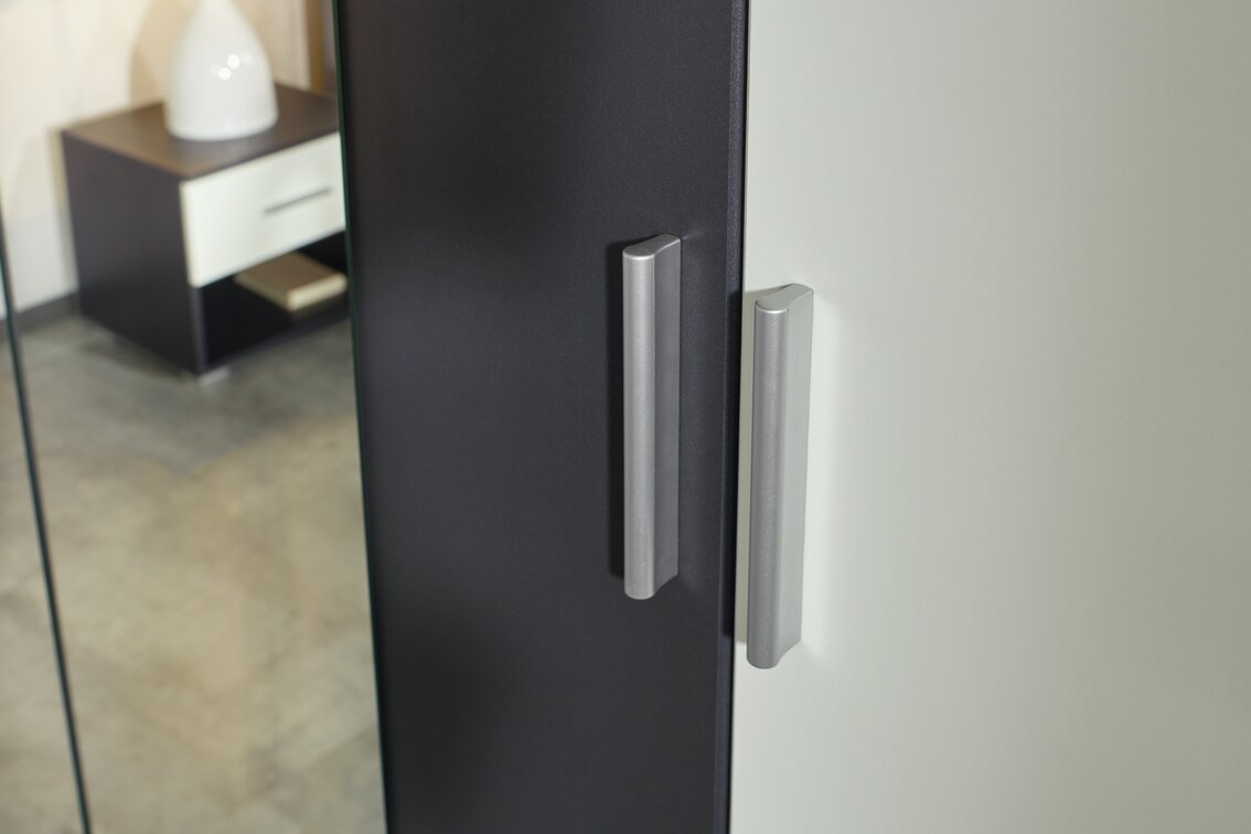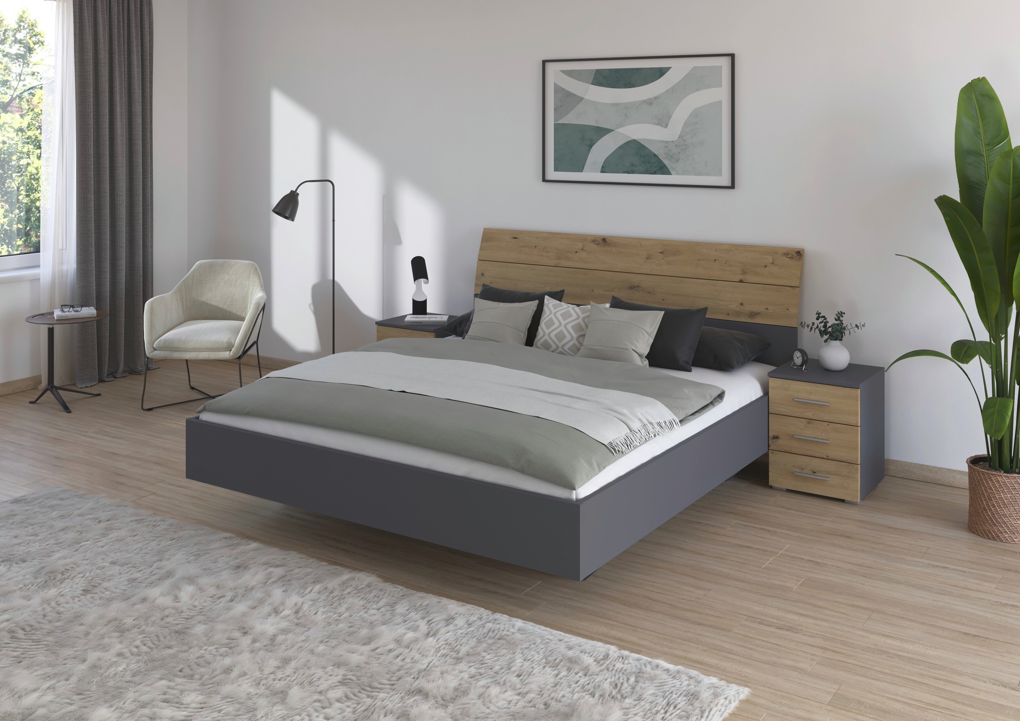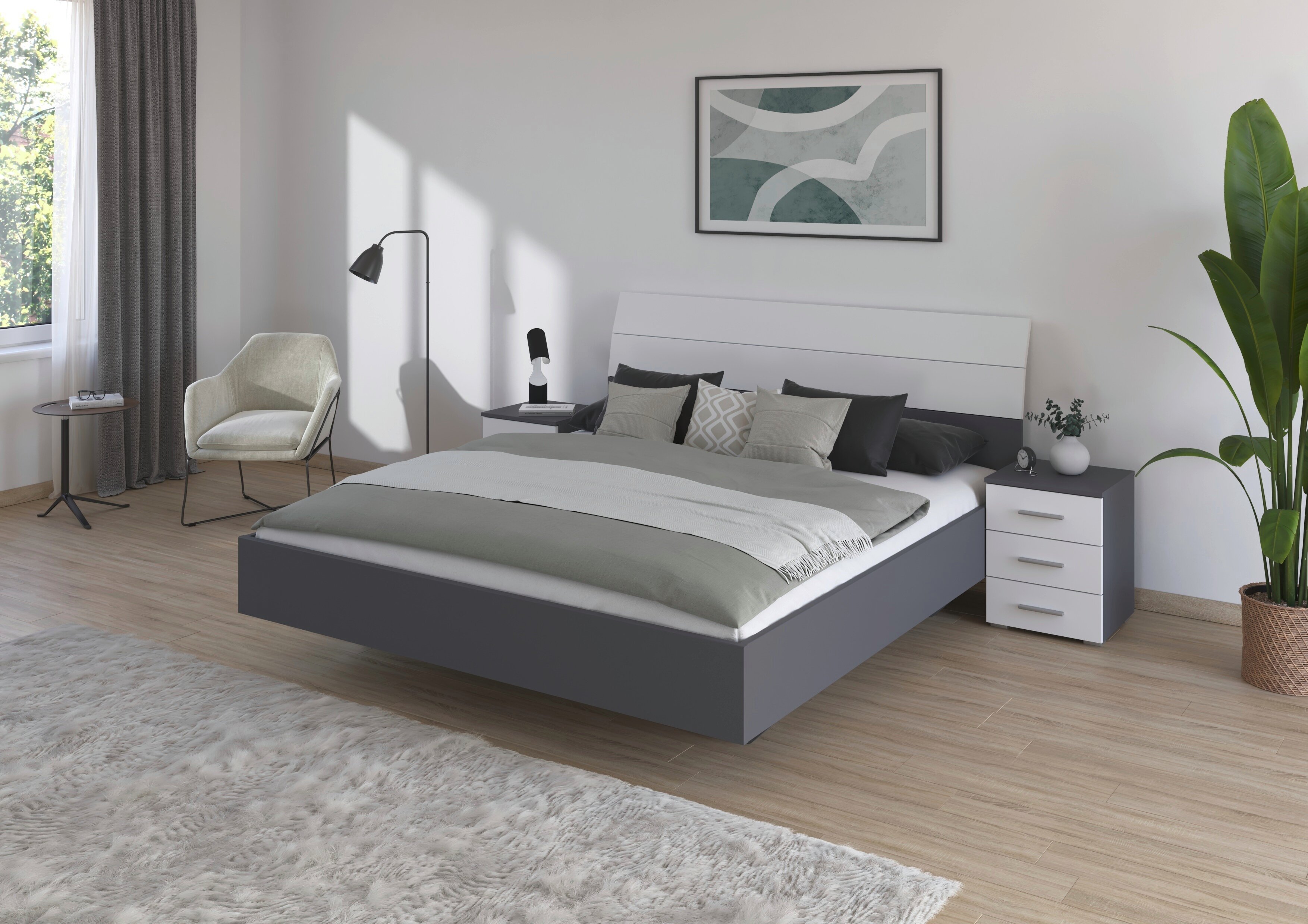 Das Schlafzimmer-Programm Borneo überzeugt mit seinem erfrischenden Farbmix und jeder Menge Stauraum. Die Bettanlage, bestehend aus Doppelbett und zwei Nachttischen, kannst du mit einem geräumigen Kleiderschrank, praktischen Kommoden und Rollbettkasten ergänzen. Dabei hast du die Möglichkeit, deinen Schrank mit Drehtüren oder Schwebetüren auszuwählen. Beide Tür-Varianten sind mit einem Spiegelelement ausgestattet und machen dir mit einem großzügigen Innenleben das Ordnung halten leicht. Dank der einfachen, gut durchdachten Möbel-Auswahl sind individuelle Zusammenstellungen möglich.