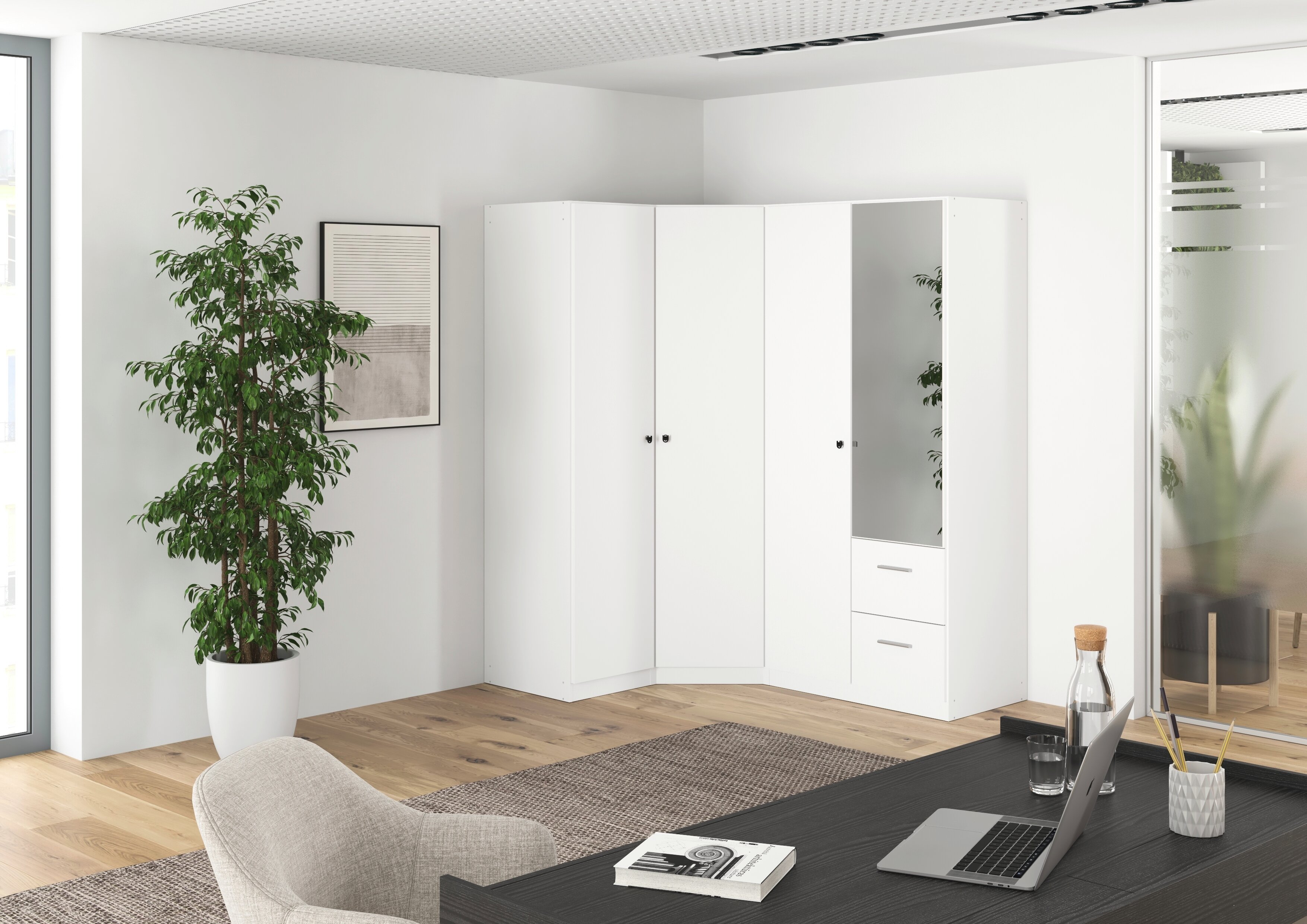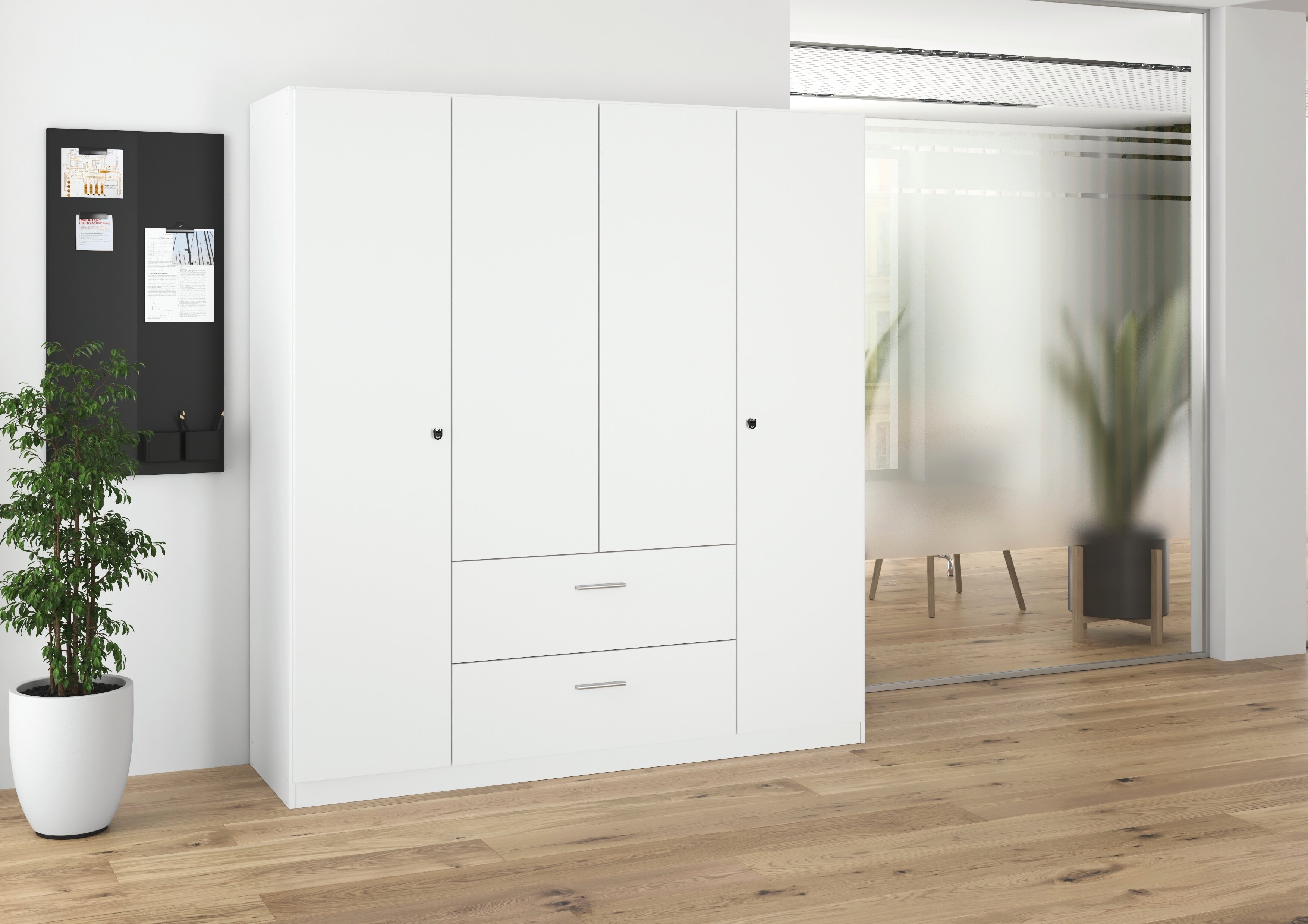 Der rauch Kleiderschrank Buchholz bringt viel Stauraum in dein Zuhause. Mit seiner ruhigen, weißen Front wirkt er modern und aufgeräumt und passt dadurch ganz leicht zu unterschiedlichen Einrichtungsstilen