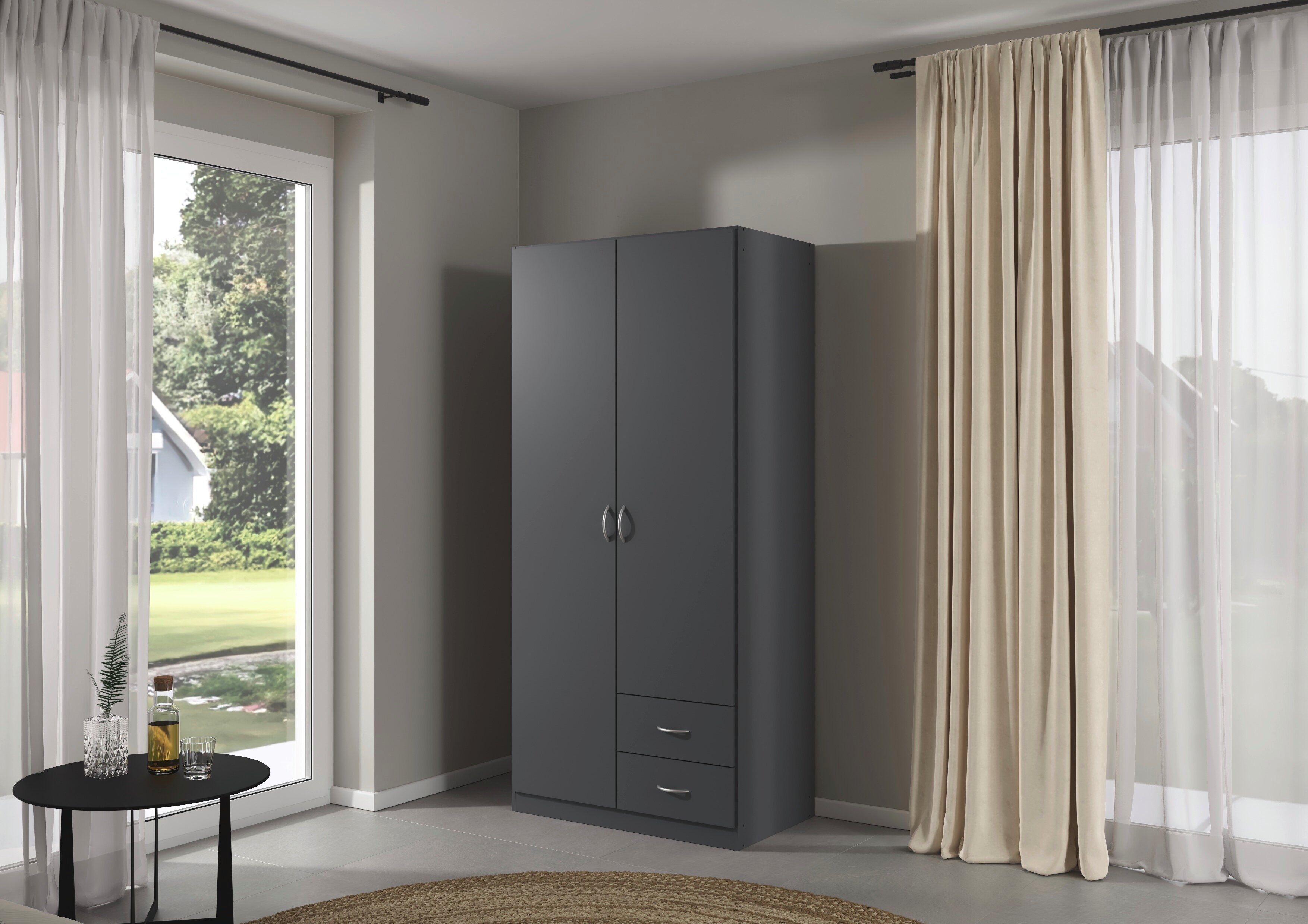 Ob einfacher Drehtürenschrank oder praktischer Funktionsschrank – bei welchem Drehtüren mit Schubkästen in der Front gekonnt kombiniert werden – die Serie Case punktet mit kompakten Maßen, einer breiten Farbpalette und einem hohem Gebrauchsnutzen. Ausgestattet mit Fachböden und Kleiderstangen ist deine Kleidung und Co im Schrankinneren ordentlich aufbewahrt.