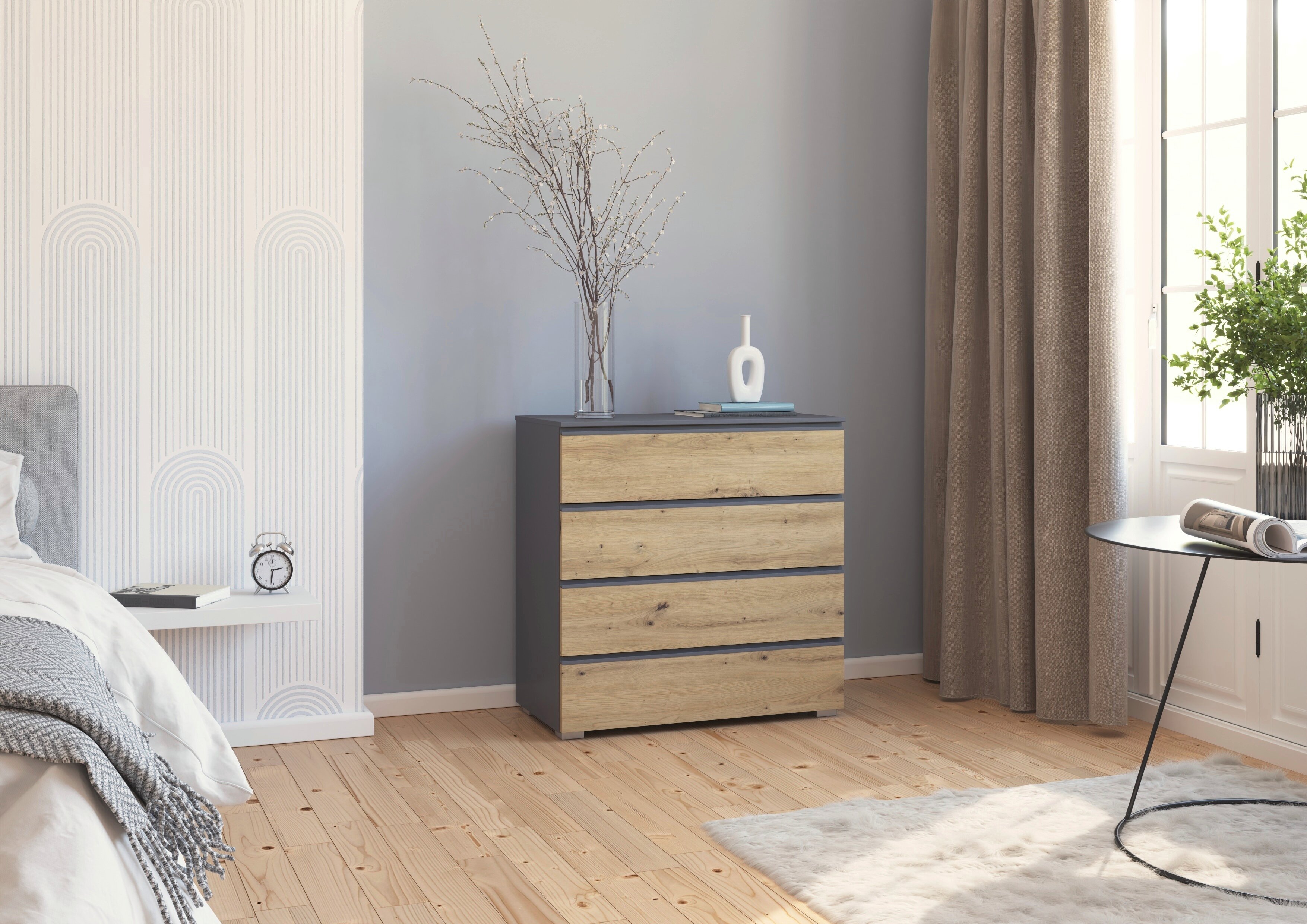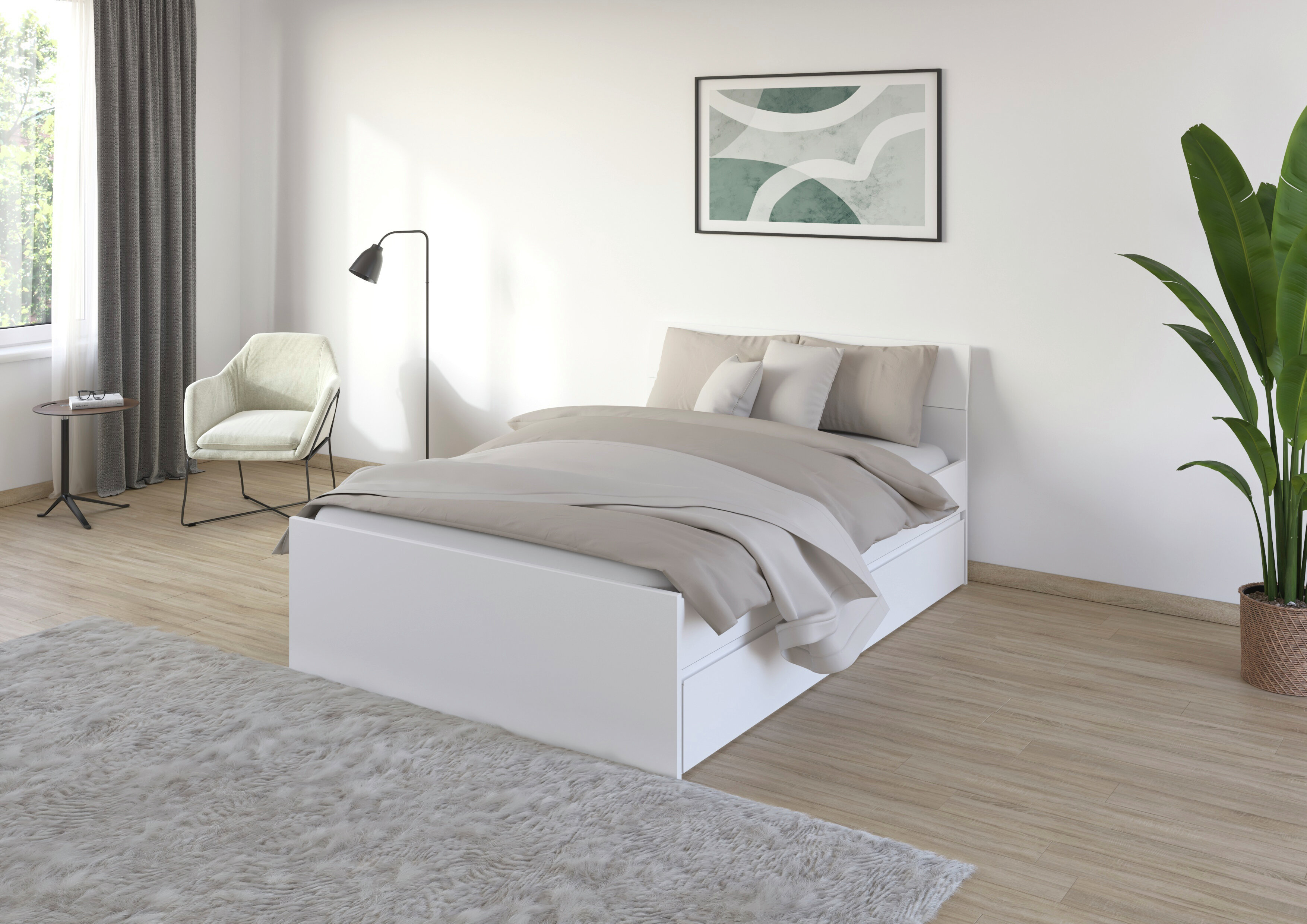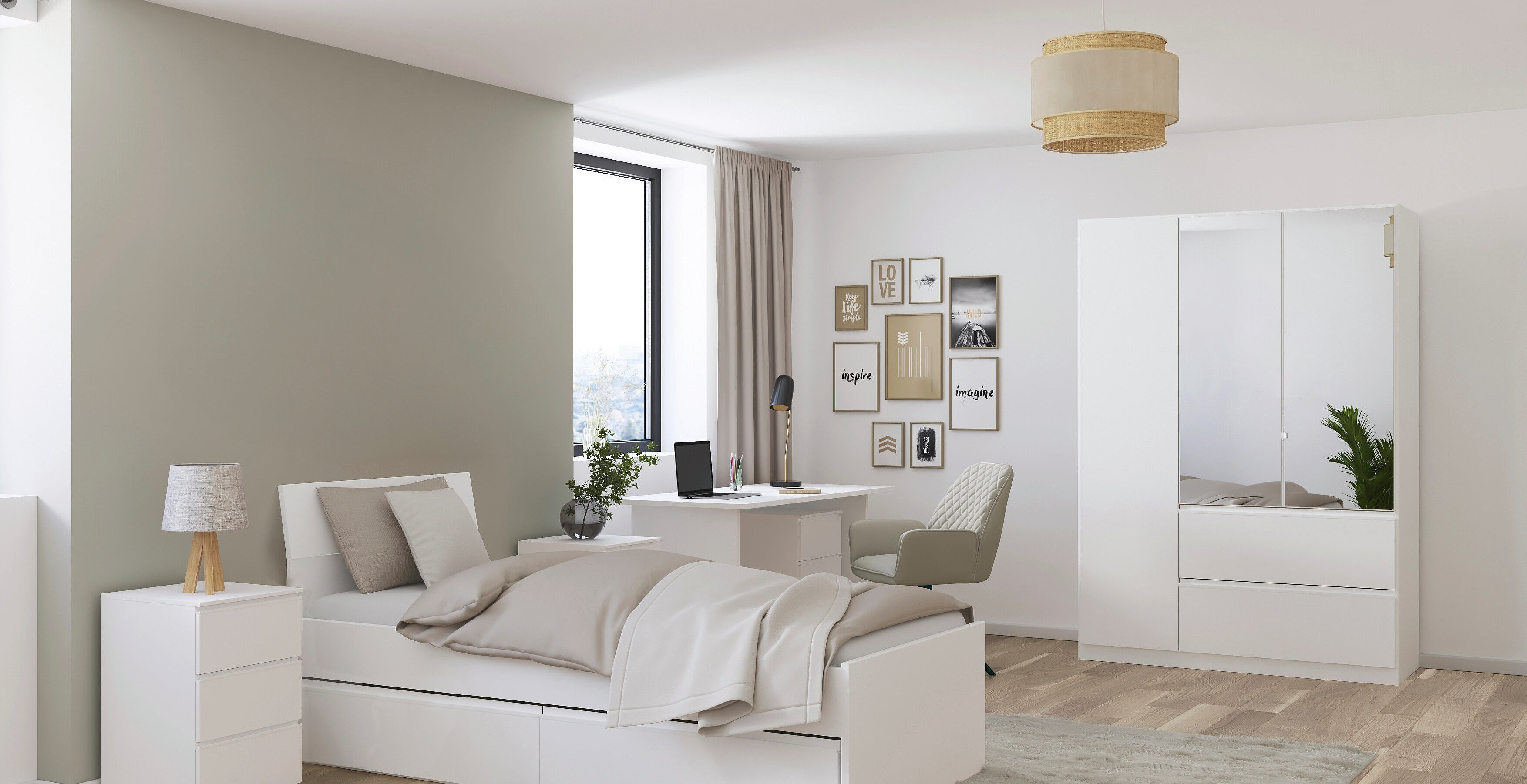 Entdecke das zeitlose und moderne Schlafzimmer Joel, welches deinen Wohn- mit dem Schlafbereich verbindet. Die grifflose Optik verleiht dem Schlafzimmer zusätzlich eine elegante Note.