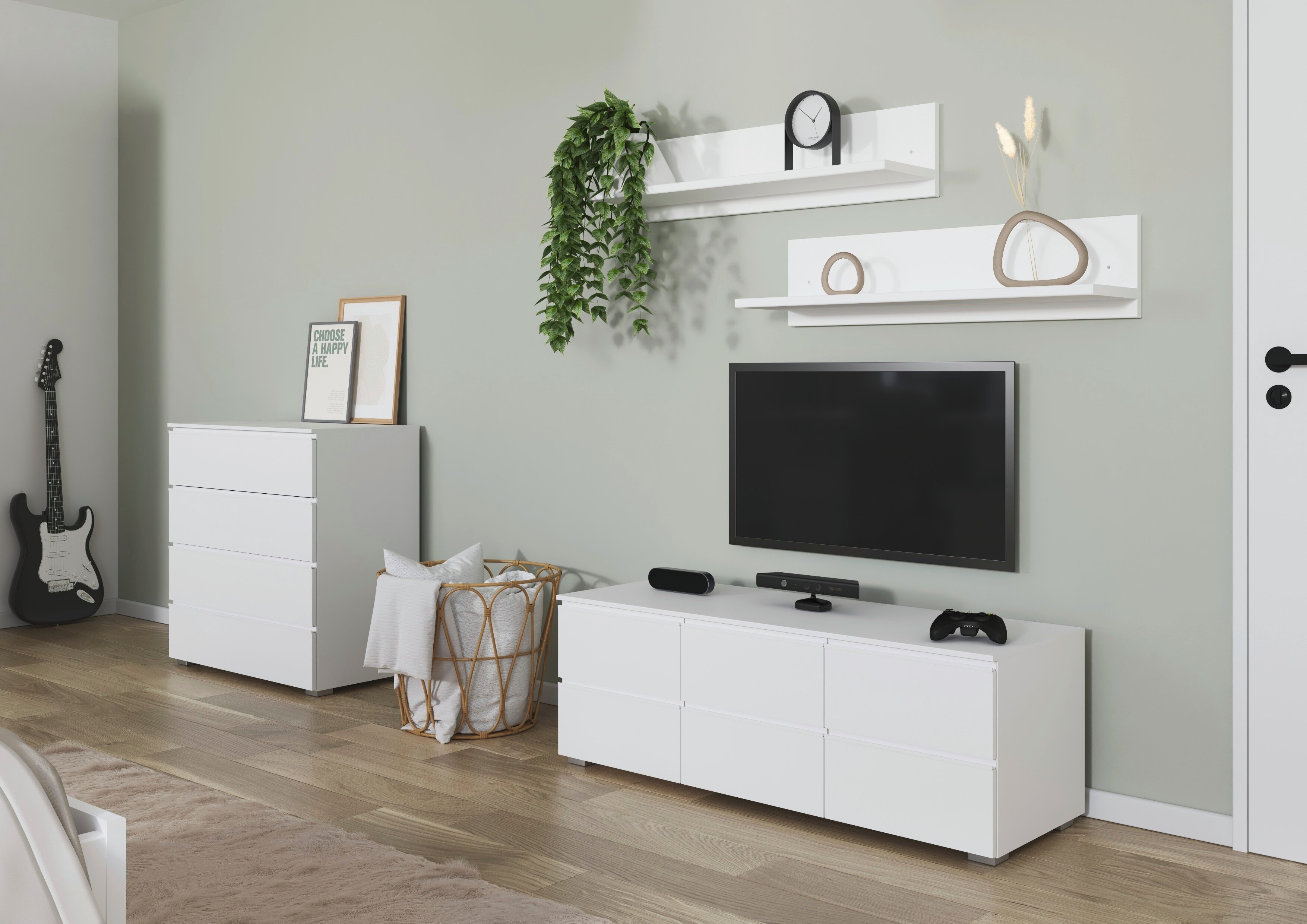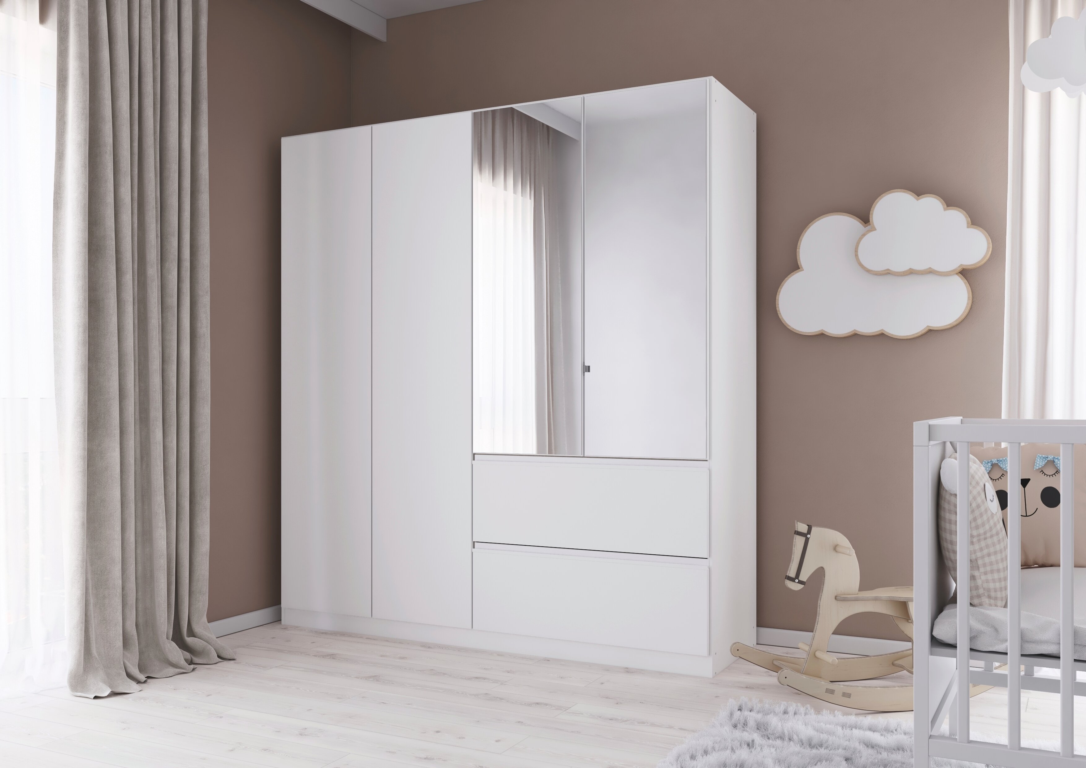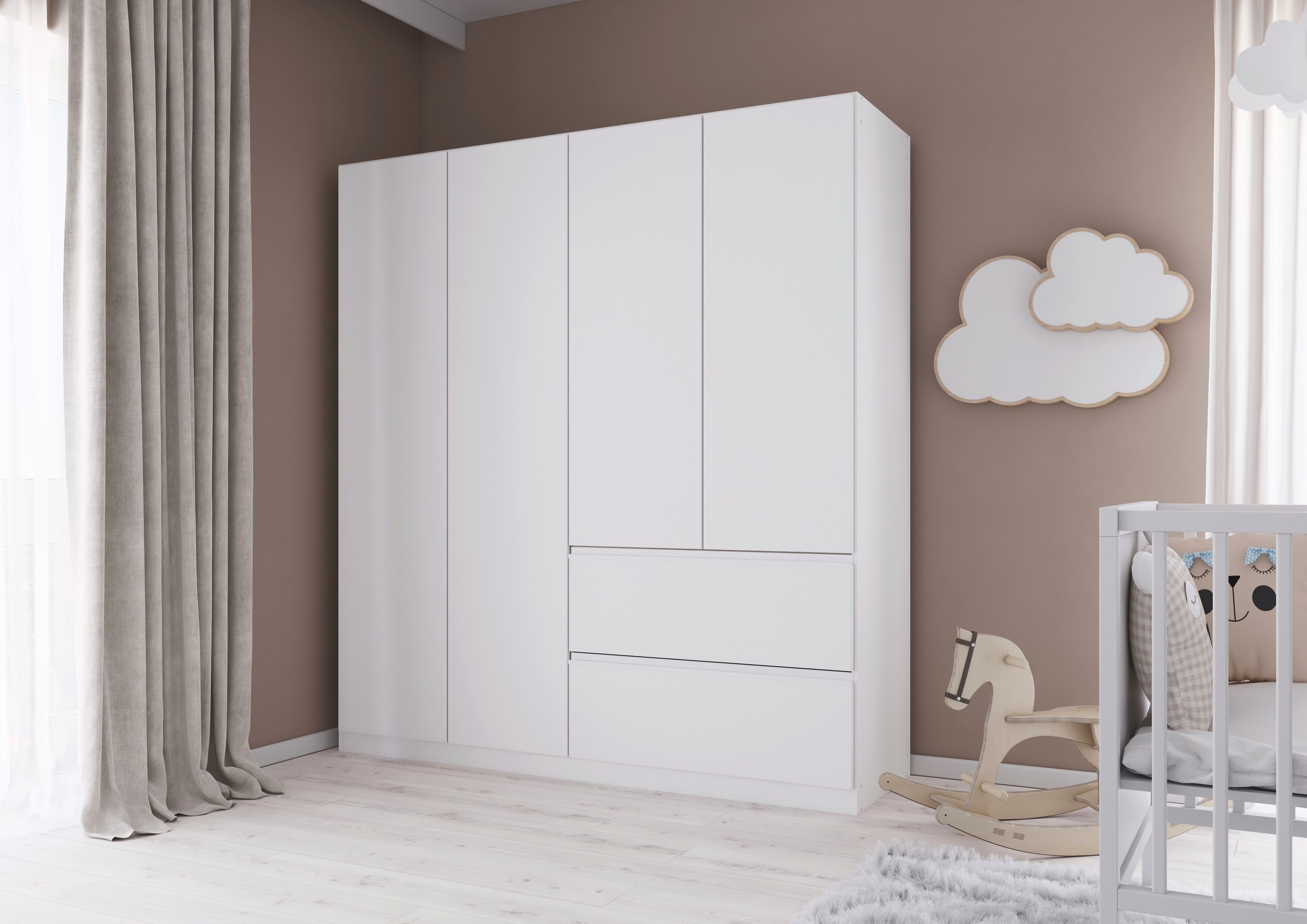 Entdecke das zeitlose und moderne Schlafzimmer Joel, welches deinen Wohn- mit dem Schlafbereich verbindet. Die grifflose Optik verleiht dem Schlafzimmer zusätzlich eine elegante Note.