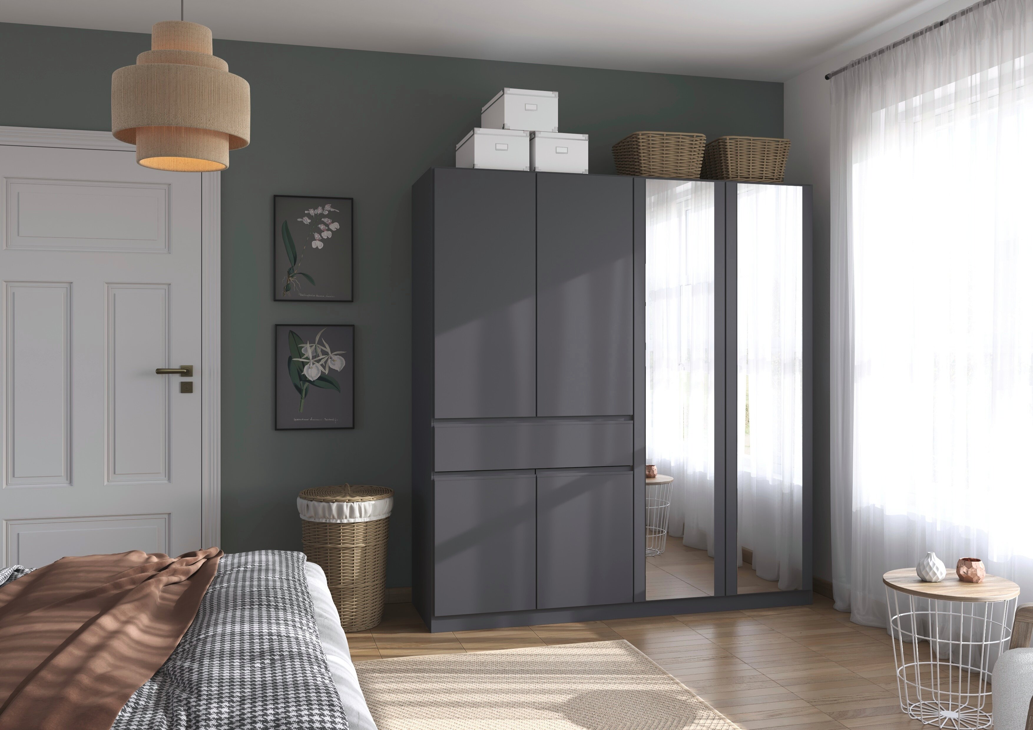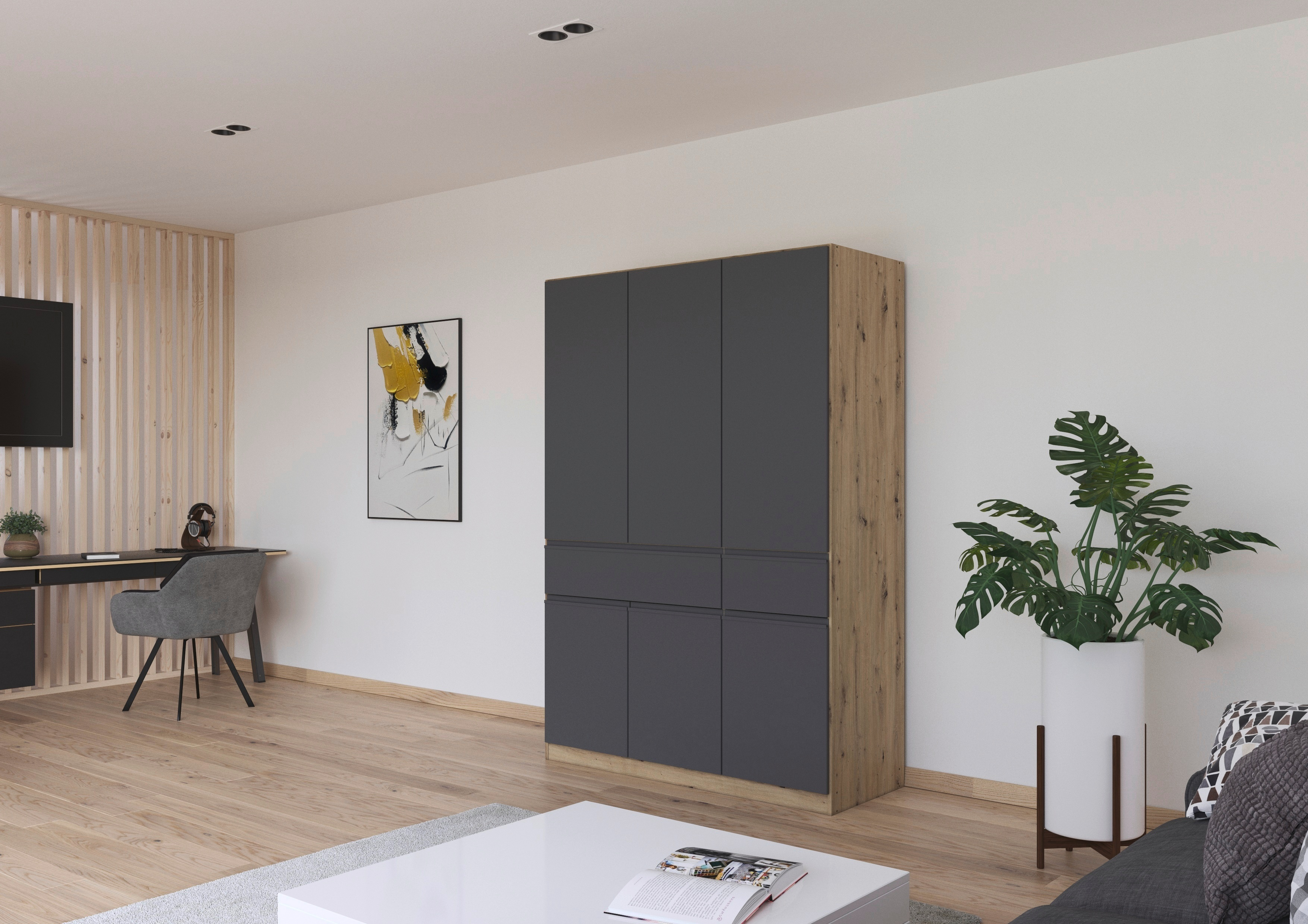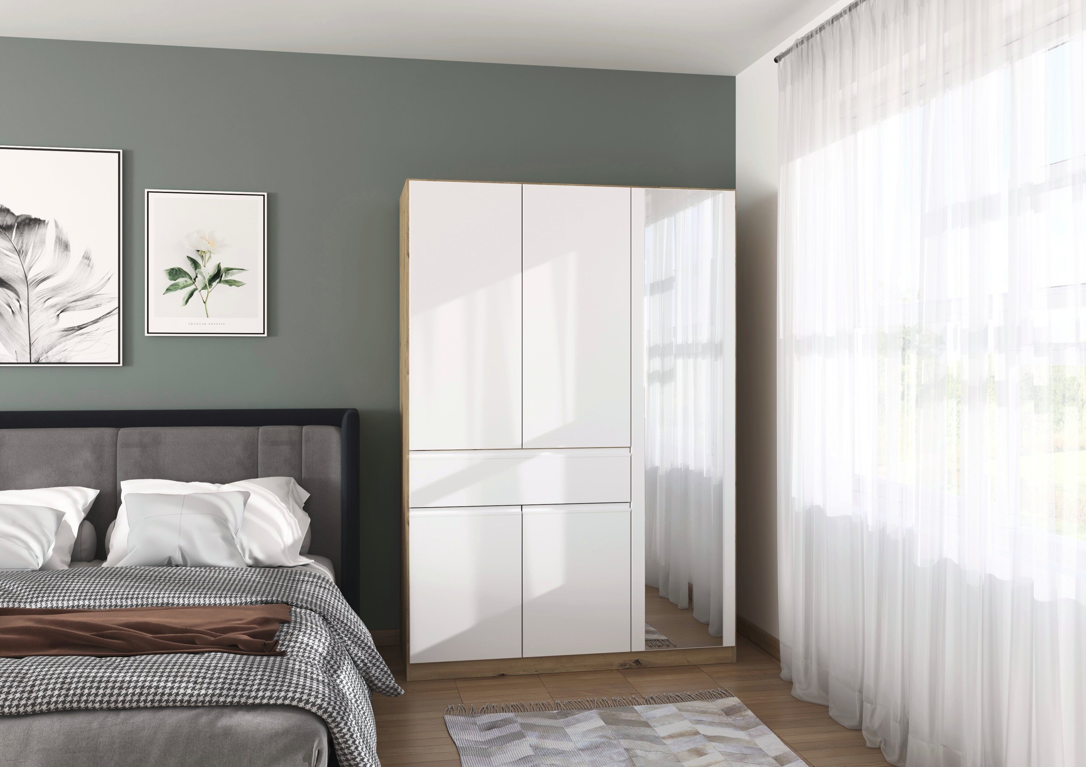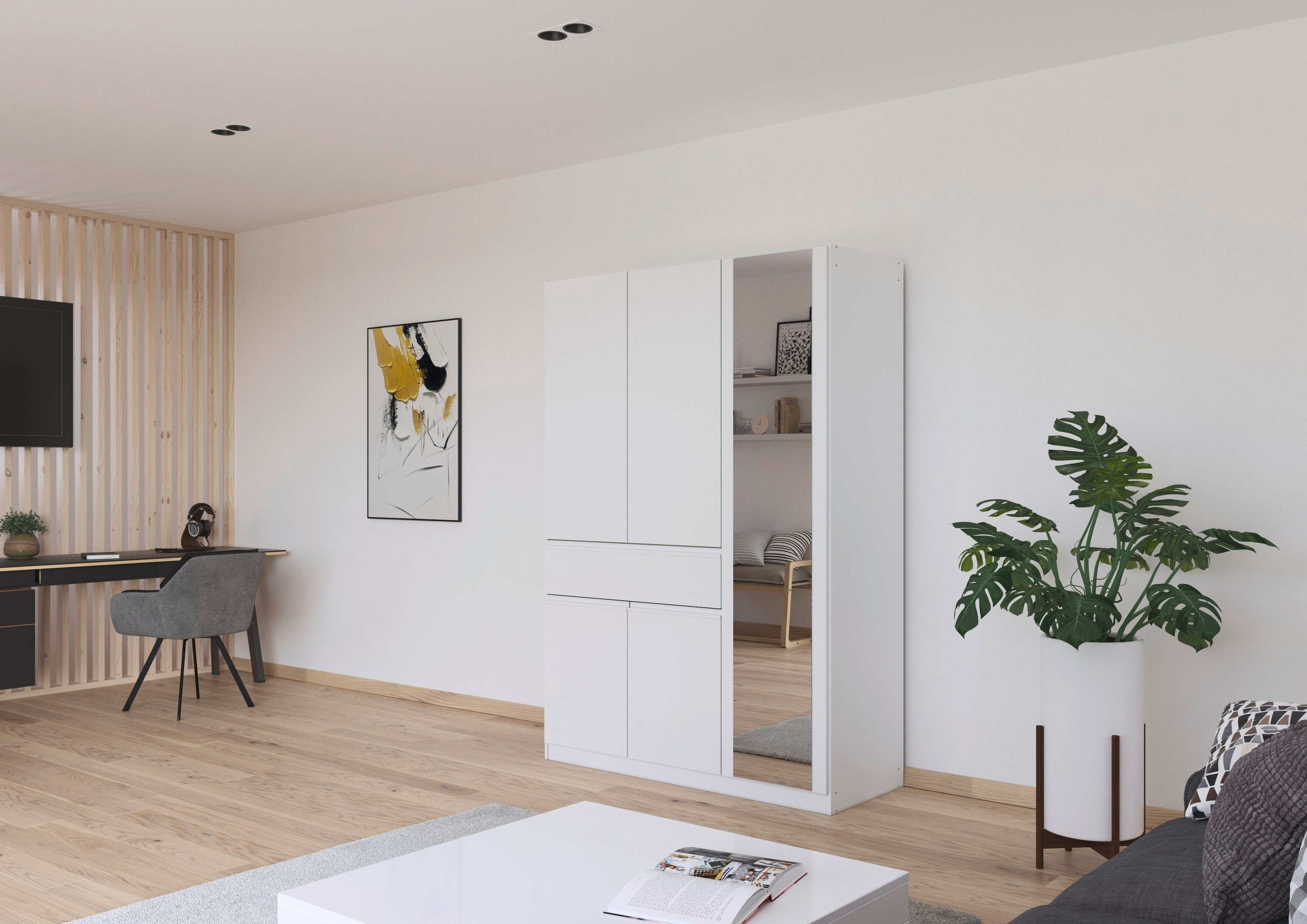 Der rauch Kleiderschrank „Macari“ lässt sich dank vieler Varianten perfekt an dein Schlafzimmer anpassen. Du kannst aus zahlreichen modernen Farben wählen, von klassischem Weiß über warmes Beige bis hin zu elegantem Graumetallic, und so genau den Look finden, der zu deinem Stil passt.