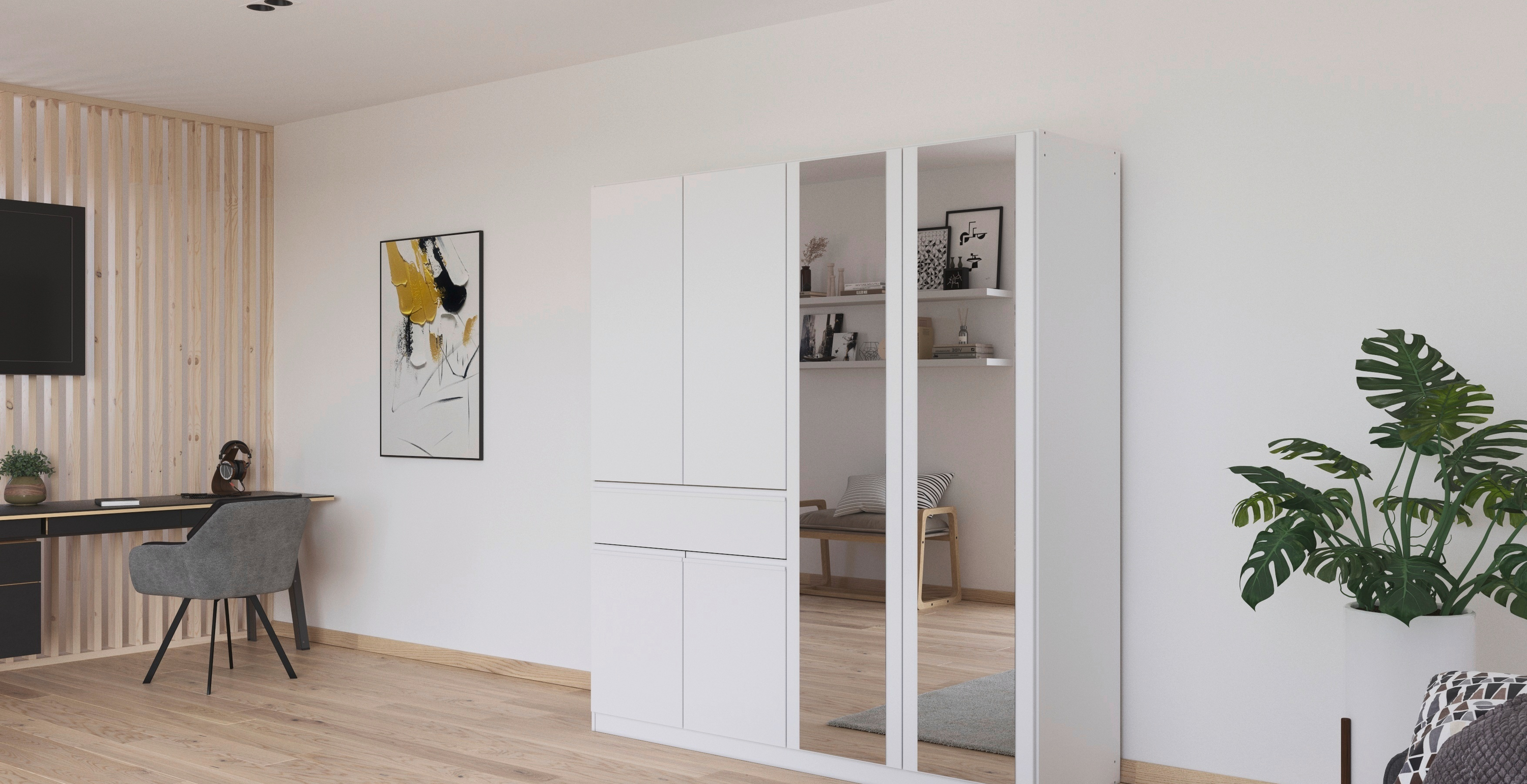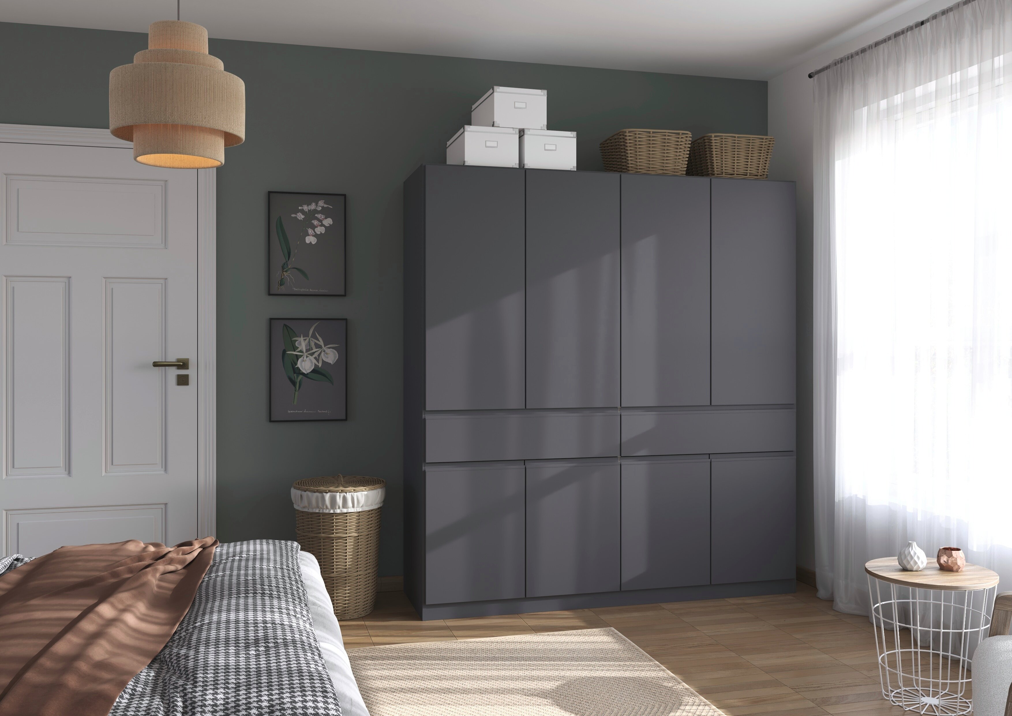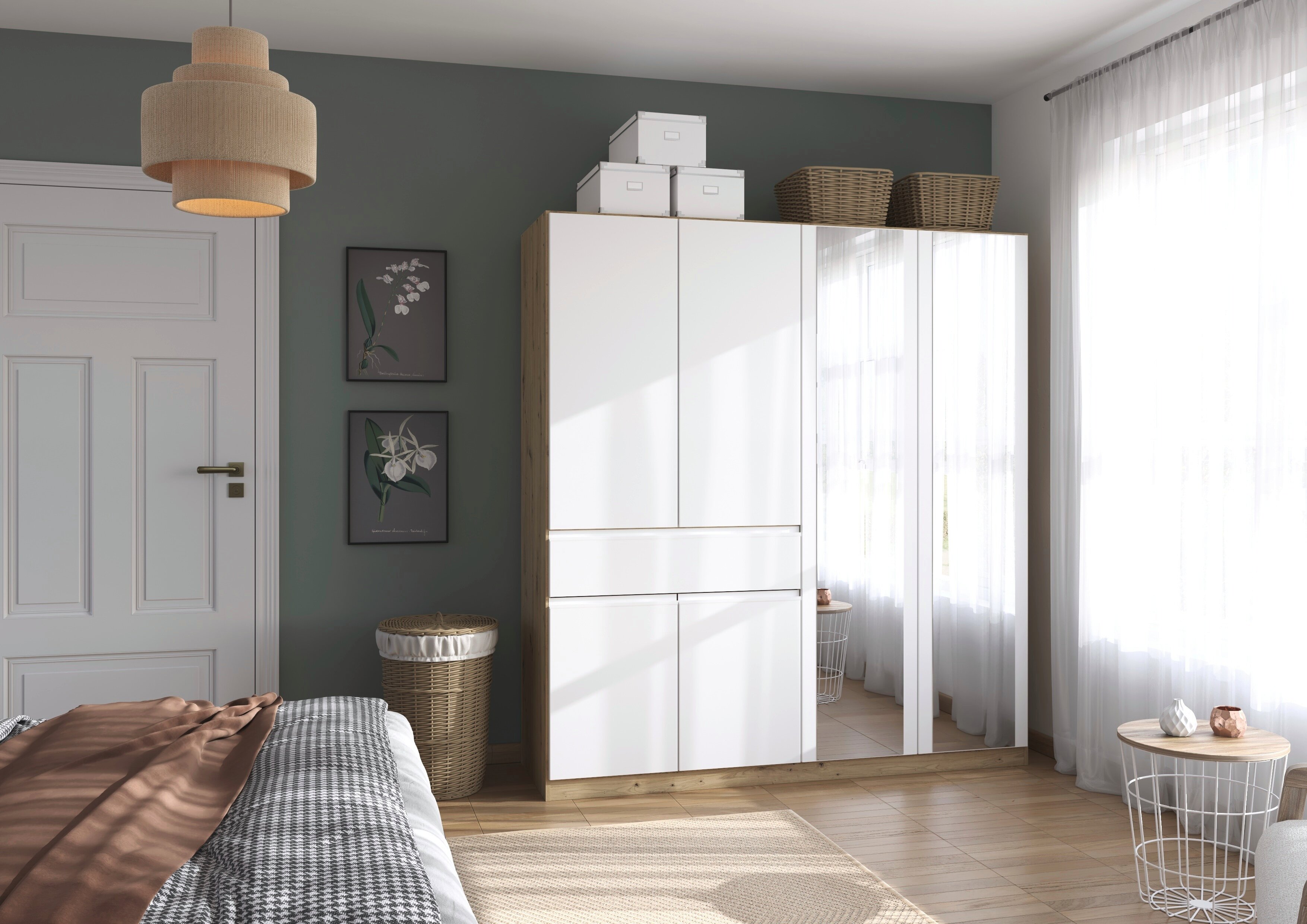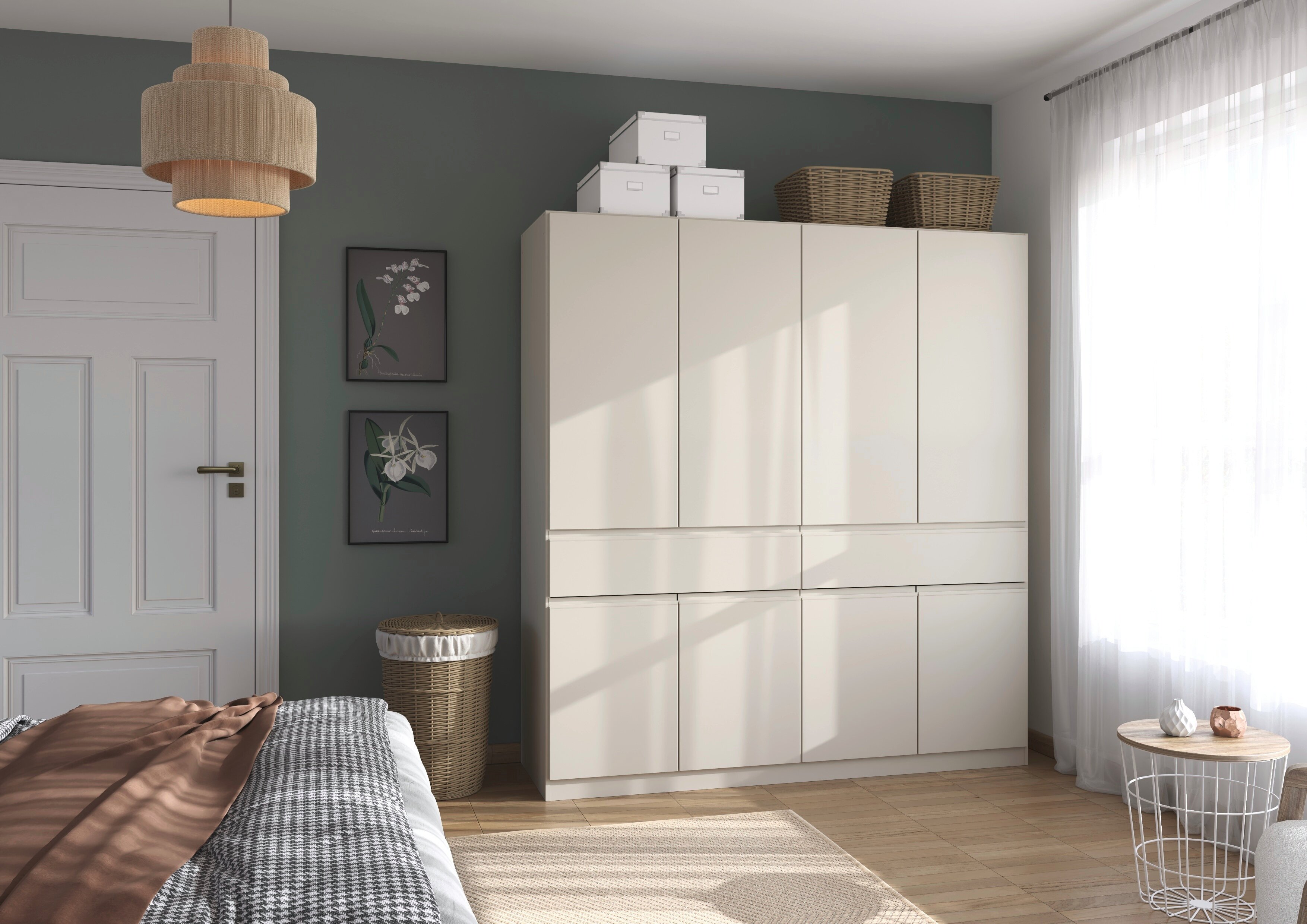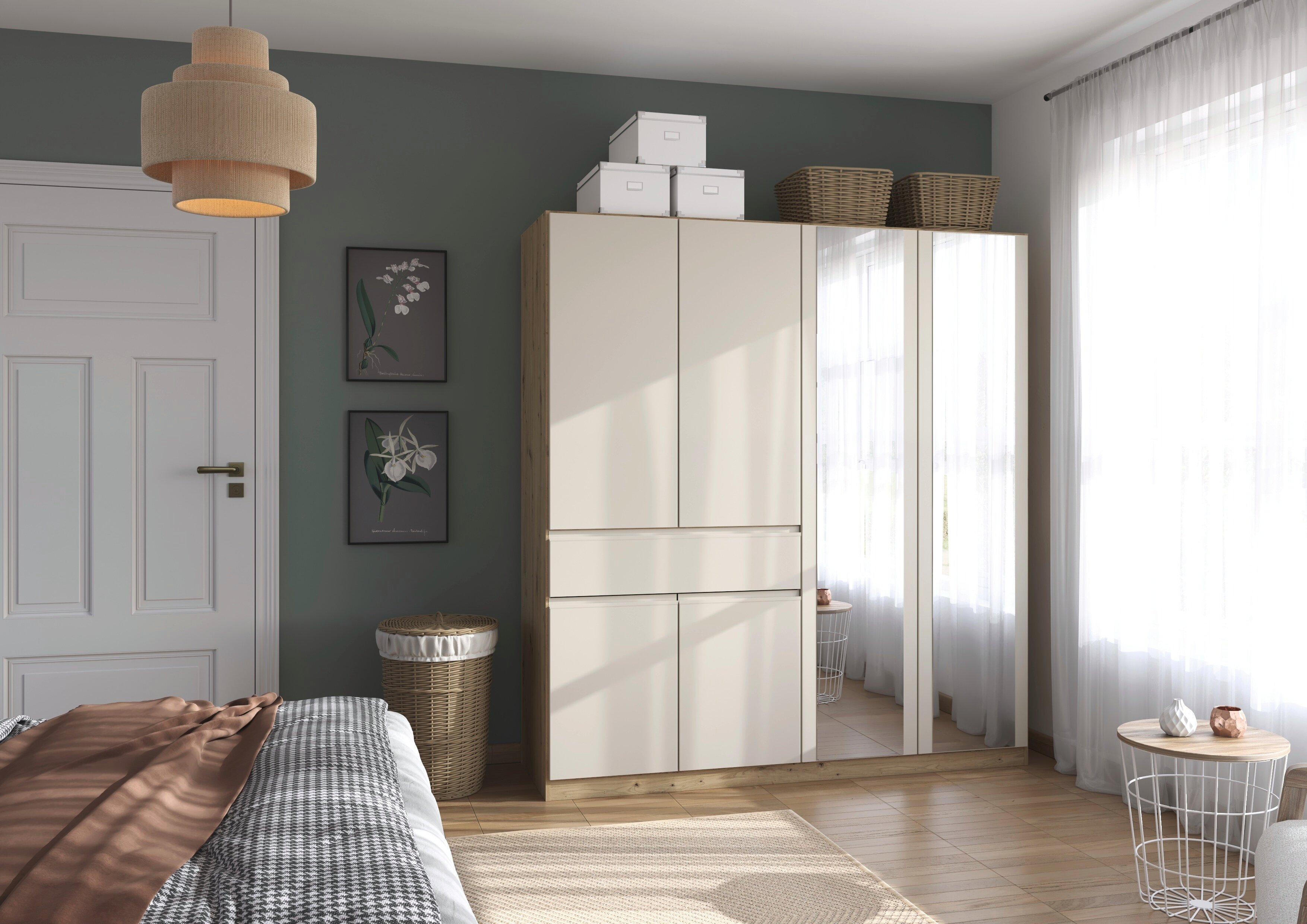 Der rauch Kleiderschrank „Macari“ lässt sich dank vieler Varianten perfekt an dein Schlafzimmer anpassen. Du kannst aus zahlreichen modernen Farben wählen, von klassischem Weiß über warmes Beige bis hin zu elegantem Graumetallic, und so genau den Look finden, der zu deinem Stil passt.