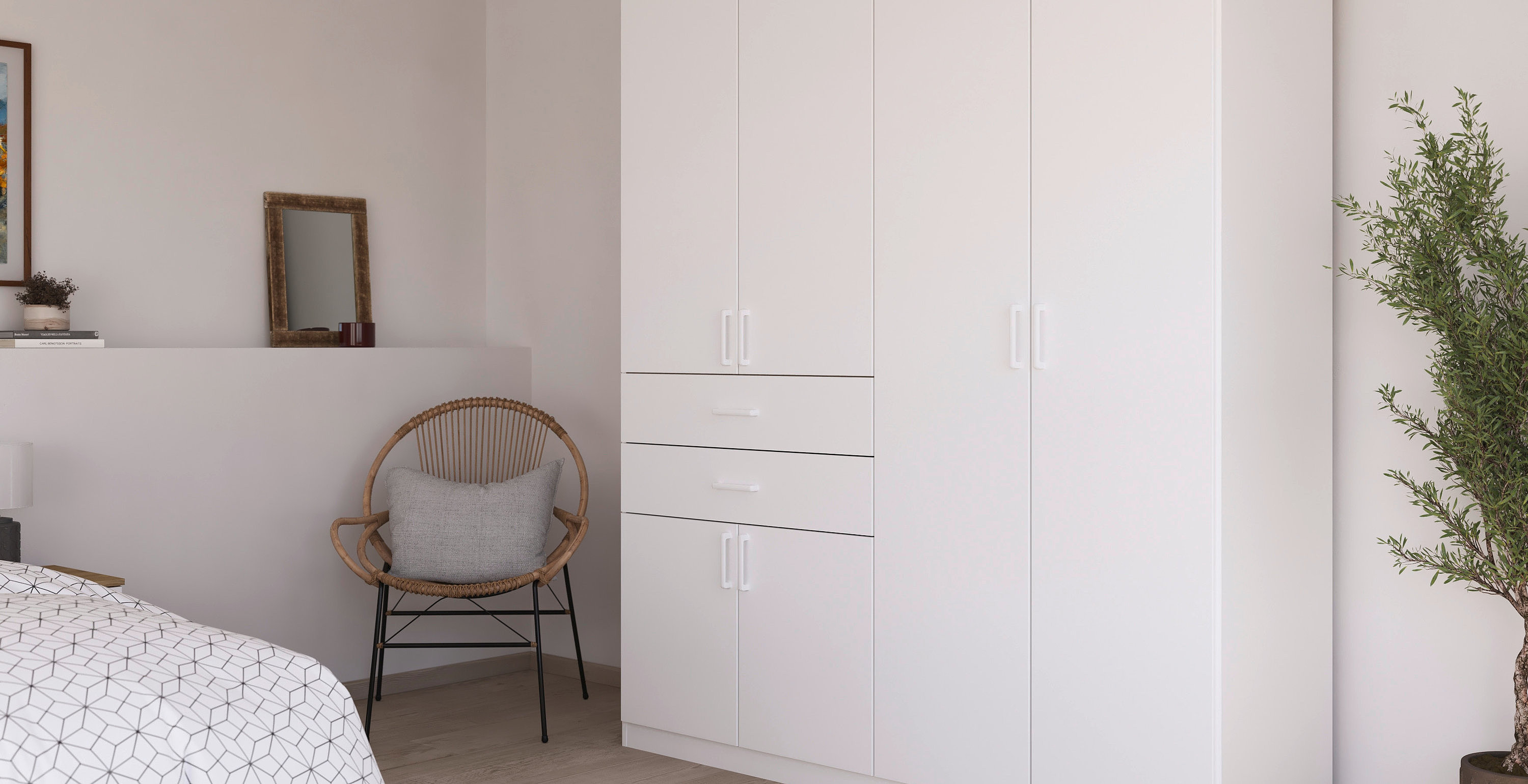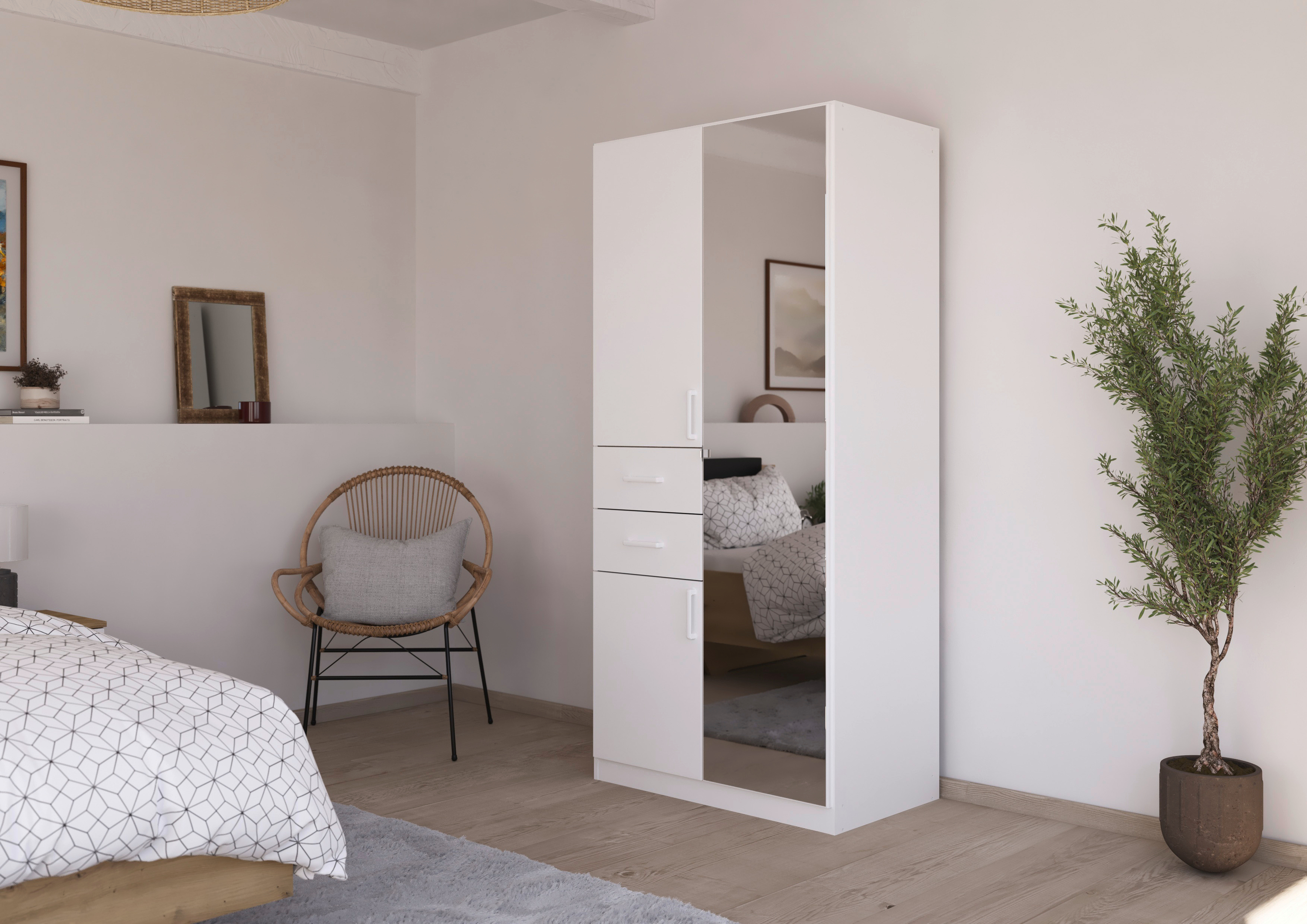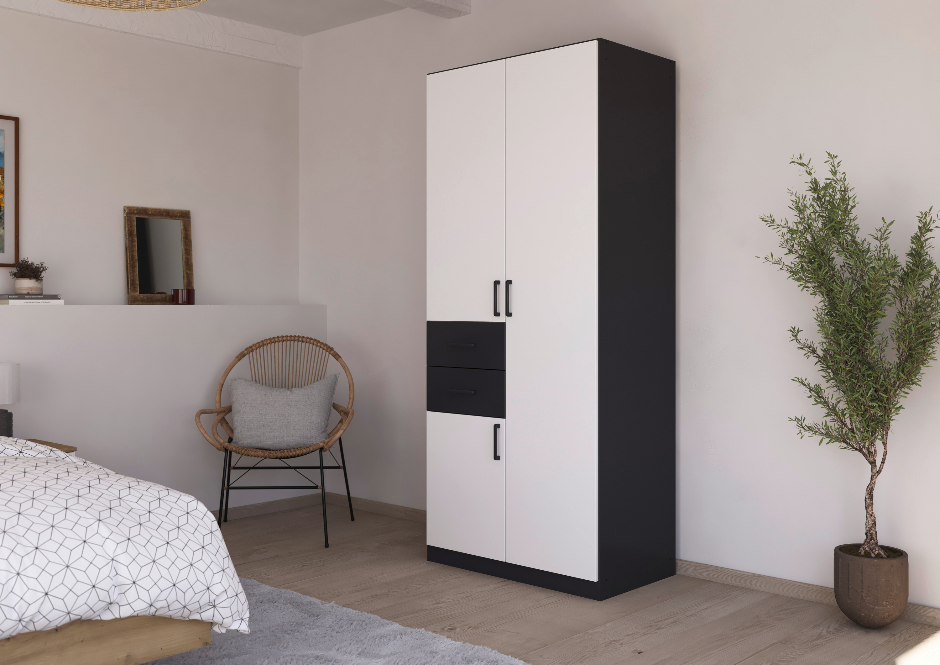 Das klassische Schlafzimmer-Set Maika von rauch umfasst ein Bett mit passenden Nachttischen, einen Drehtürenschrank und zeitlose Kommoden, die zusammen ein einheitliches Gesamtbild ergeben