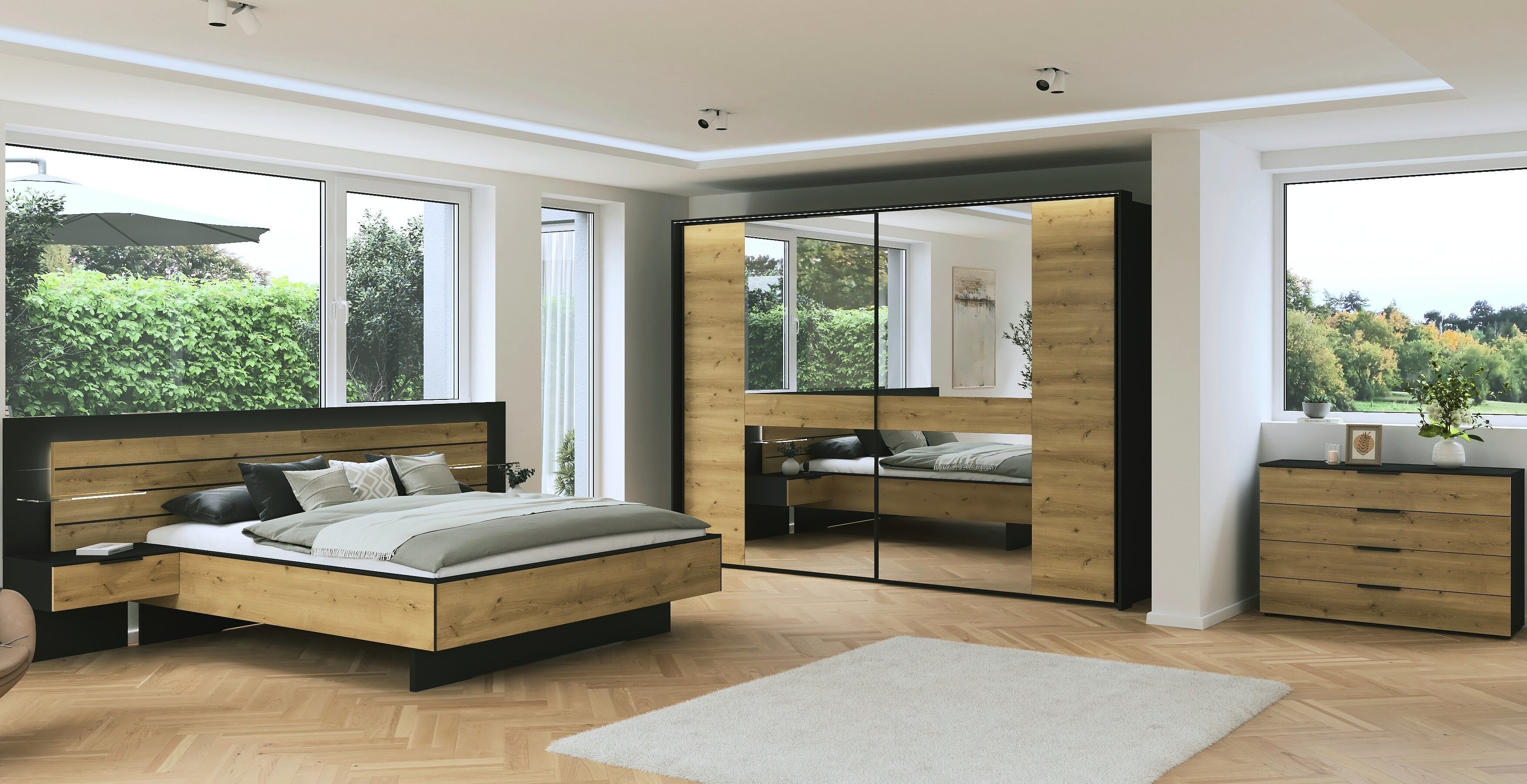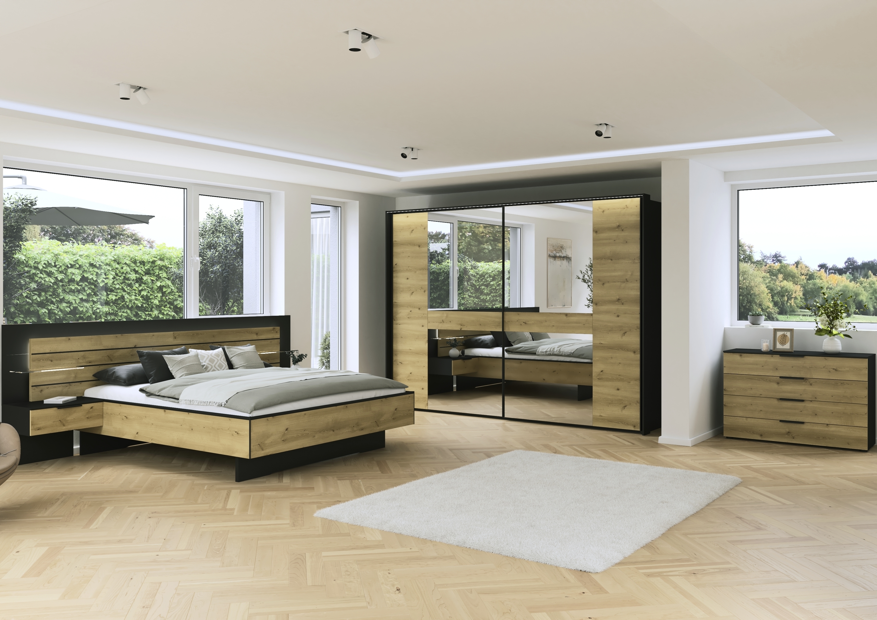 Das rauch Schlafzimmer-Set »Ventura« bietet modernes Design mit hoher Funktionalität und bildet ein harmonisches Gesamtbild in deinem Zuhause. Das Set beinhaltet Betten, Nachttische, Kommoden und Schwebetürenschränke, die perfekt aufeinander abgestimmt sind.